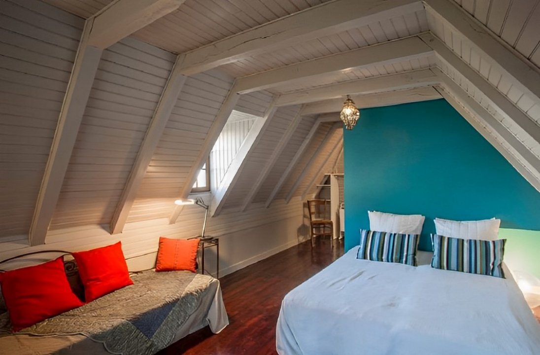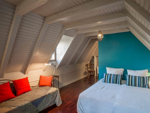 • à l'étage : une grande chambre équipée d'une douche à l'italienne et WC, le lit de 160 peut être divisé en deux lits jumeaux ainsi qu'un lit de 90.