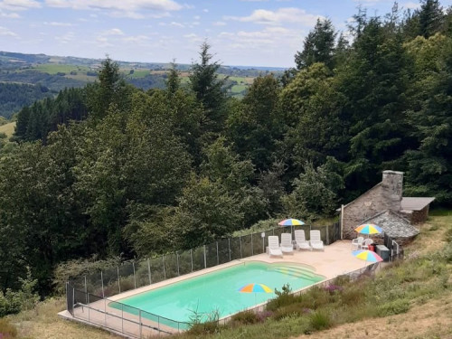 Cette ancienne maison de ferme auvergnate, en pierre de pays et lauze, est un gîte indépendant dans le hameau privé de Cabrespine (3 gîtes et la maison des propriétaires), nichée en pleine nature avec une vue imprenable sur les monts d'Auvergne et la vallée du Lot, pour 5 personnes, composé :