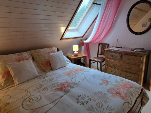 À l'étage : salon avec canapé convertible/couchage très confortable - bibliothèque-télé. Chambre, lit fait à l'arrivée.
