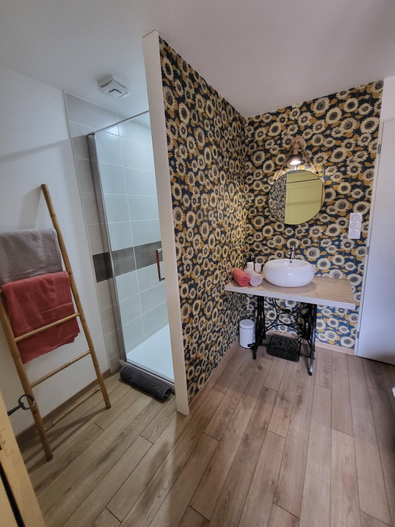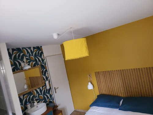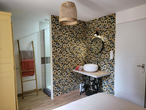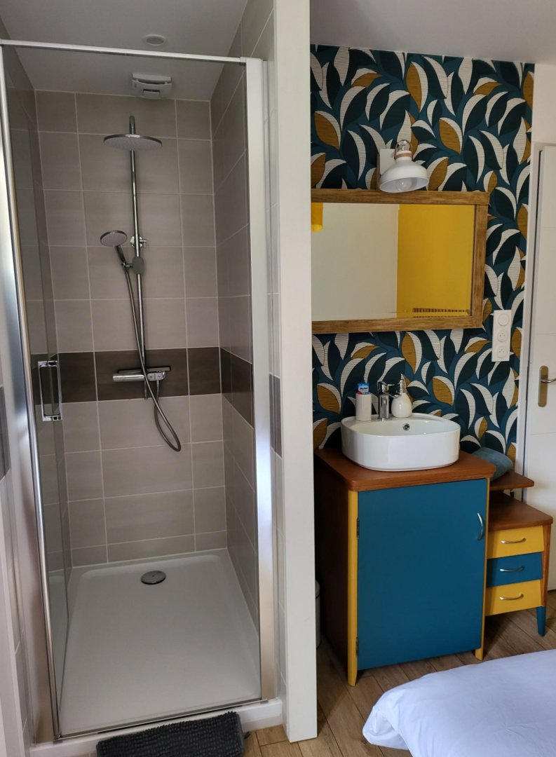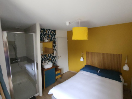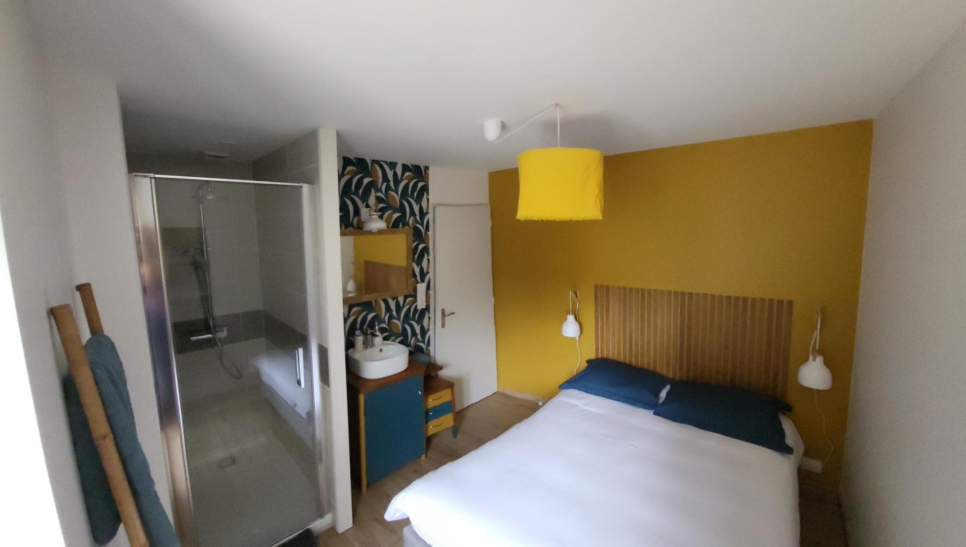 Il y a deux chambres, une avec un lit de 160x200 et une deuxième avec un lit de 140x200. Chacune d’elle possède sa douche et son lavabo.