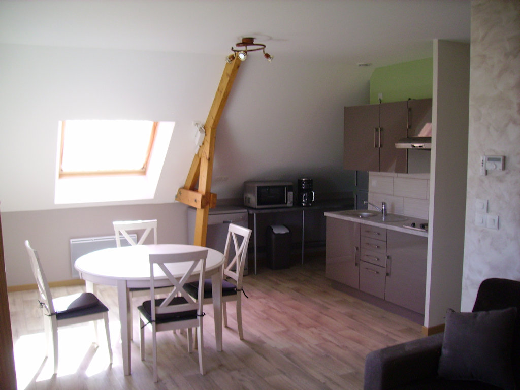 Gîte 42 m² tout confort pour 4 personnes maximum, comprenant : cuisine (lave-vaisselle, plaque de cuisson, réfrigérateur, four, micro-ondes), séjour avec canapé, télévision, 2 chambres (lits de 140 cm), salle de bain (avec lave linge), WC.