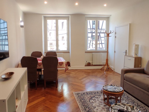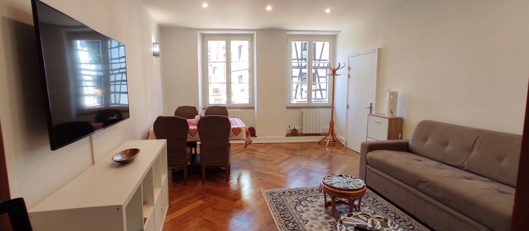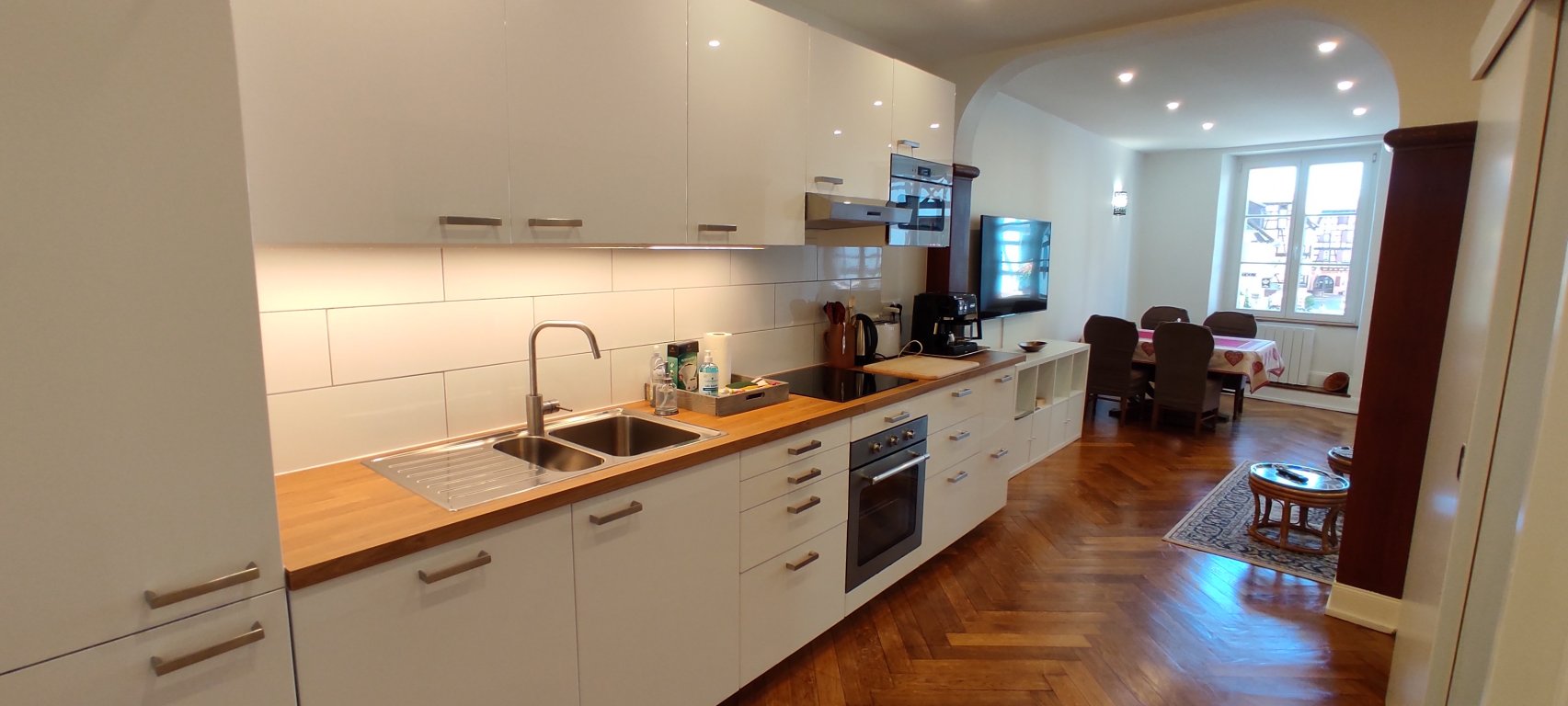 Offrez-vous le cœur de Riquewihr, la perle du vignoble alsacien, dans ce confortable appartement de plain-pied de 45 m², entièrement refait à neuf, au 1er étage d'une belle maison typique à colombages, avec une des plus belles vues sur le village.