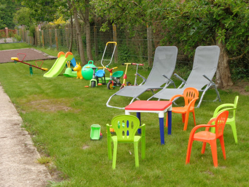Au fond du jardin, un espace détente avec une table de ping-pong, jeux de mölkky, appareils de remise en forme, des jeux pour les plus petits (vélo et trottinette) et un terrain privé de 450 m² avec table de pique-nique, terrain de pétanque et barbecue.