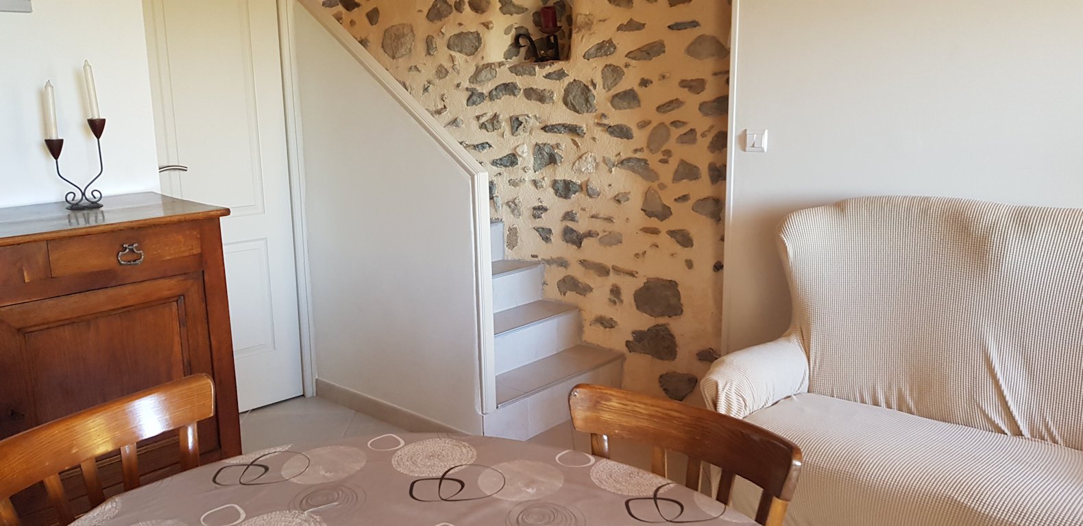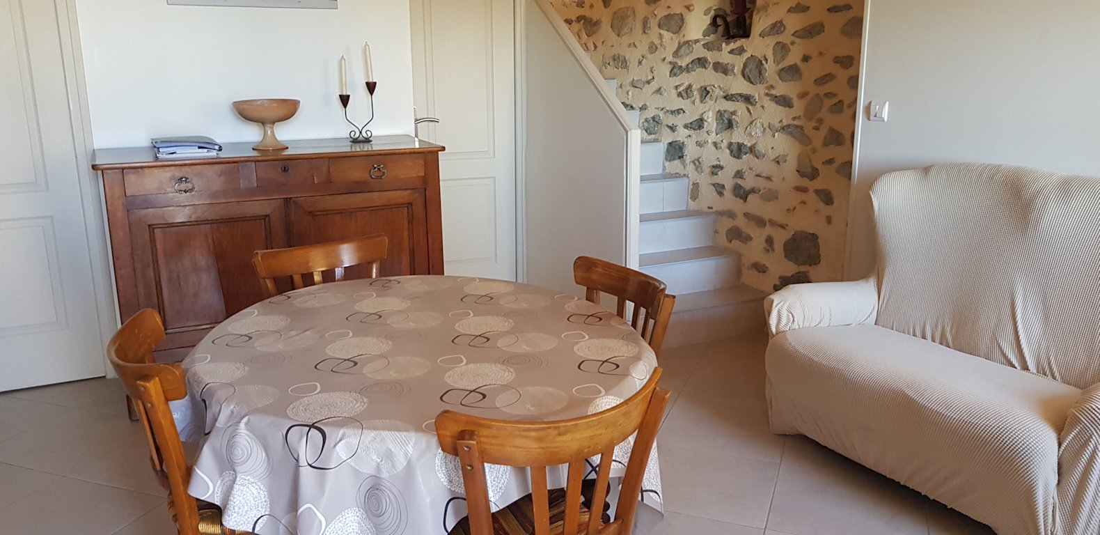 La maison est située dans un endroit calme pour profiter de la campagne et elle est dotée d'une cour ombragée pour des repas au frais