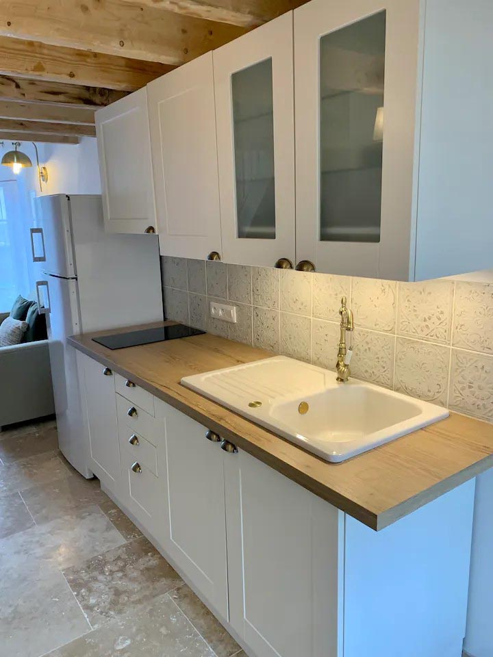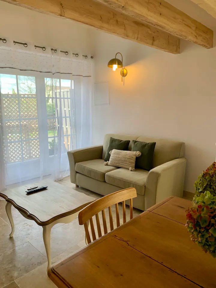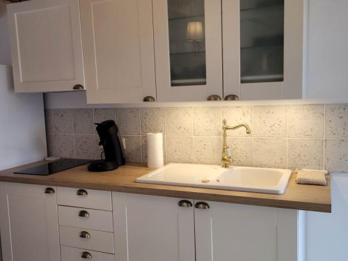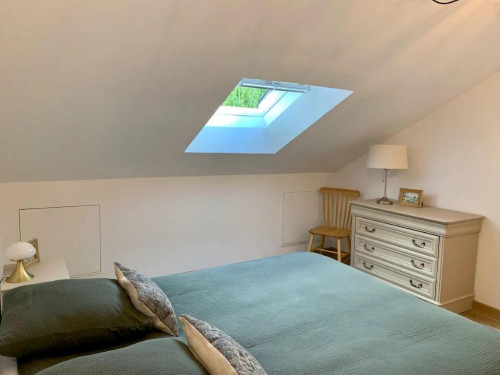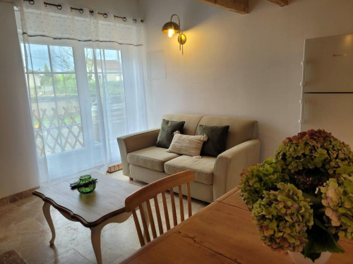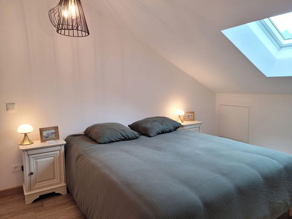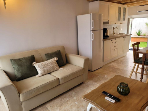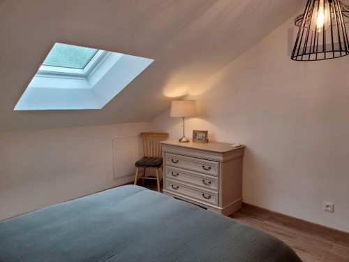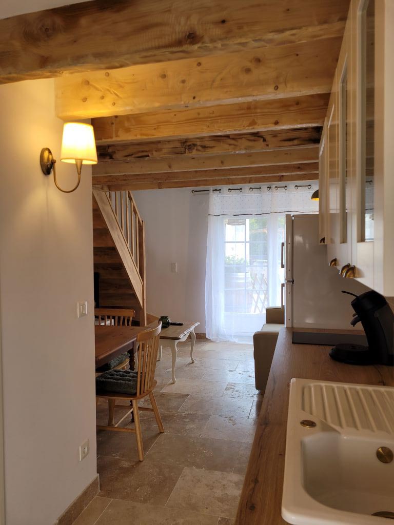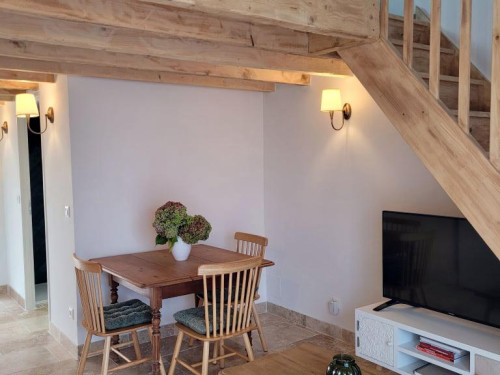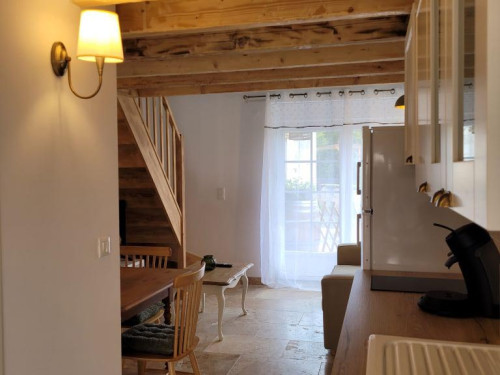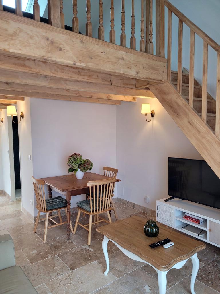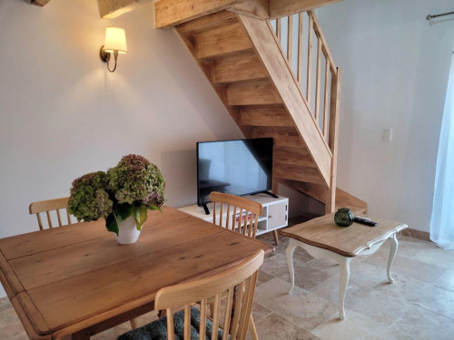 Idéal pour un couple, le gîte est un charmant duplex lumineux composé d'une pièce à vivre avec canapé convertible, sanitaires avec douche à l'italienne. L'escalier mène à une chambre avec un lit 160 en mezzanine.
