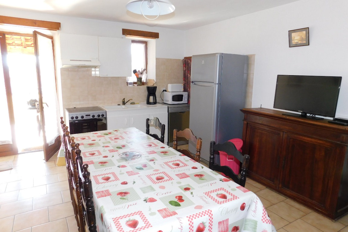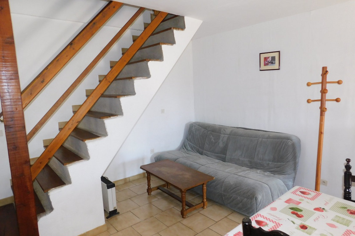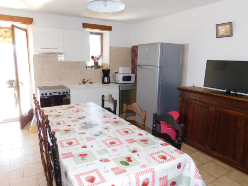 La location est sur 2 niveaux, au rez-de-chaussé la pièce de vie avec kitchenette, coin repas et espace salon, une salle d'eau, un WC indépendant et une buanderie. A l'étage 3 chambres.