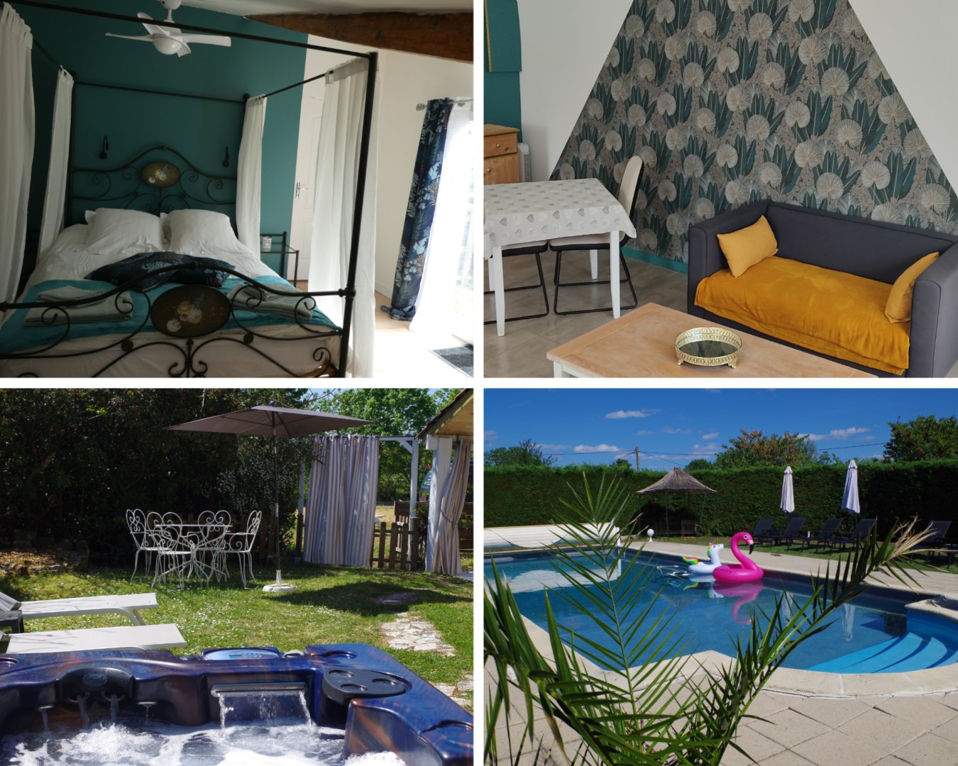 Au calme, possibilité de balades, de pêche, canoë-kayak, golf, …avec son jacuzzi privatif