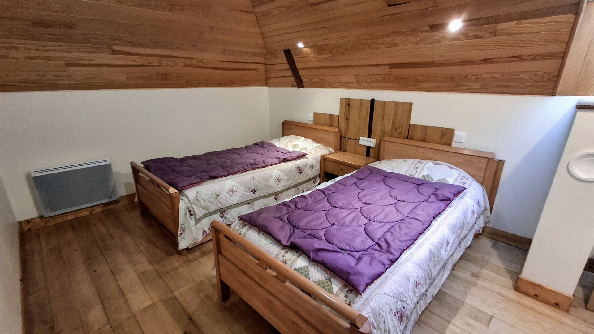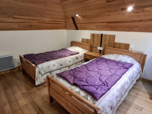- A l'étage: 3 chambres indépendantes (1 lit de 140, 4 lits de 90), 1 salle d'eau et 1 sanitaire indépendant, 1 coin documentation
