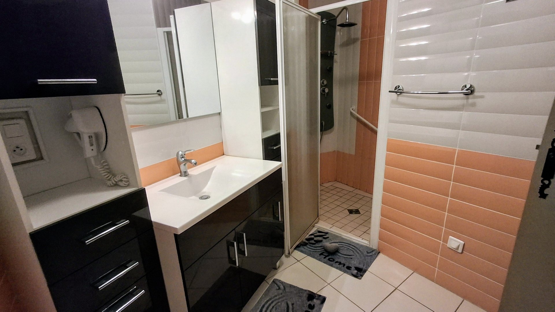- Rez-de-chaussée comprenant 1 séjour/salon avec insert, 1 cuisine américaine, 1 chambre avec lit de 140, 1 grande salle d'eau avec douche à l'italienne, 1 sanitaire indépendant, salle de jeux et bibliothèque