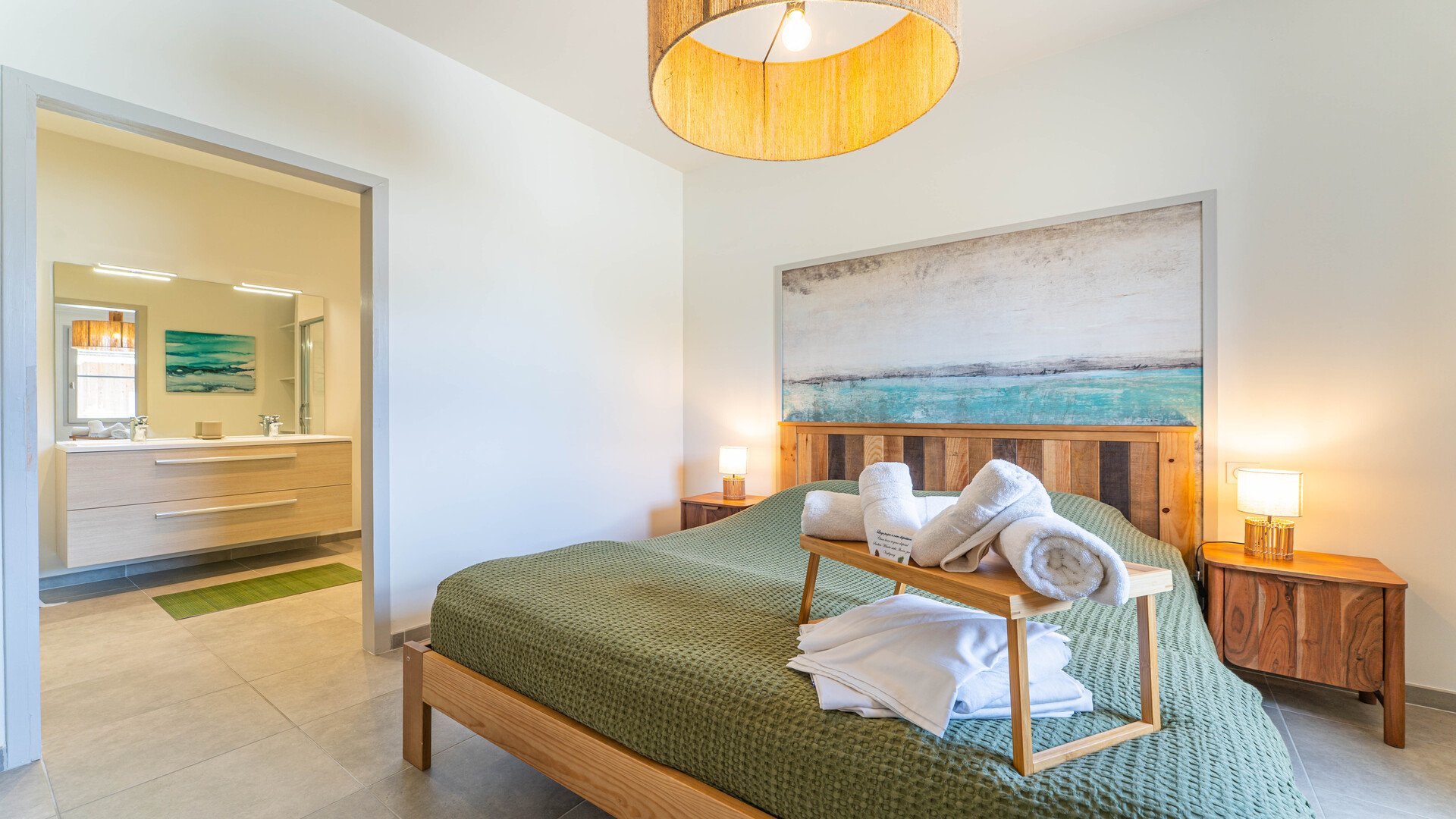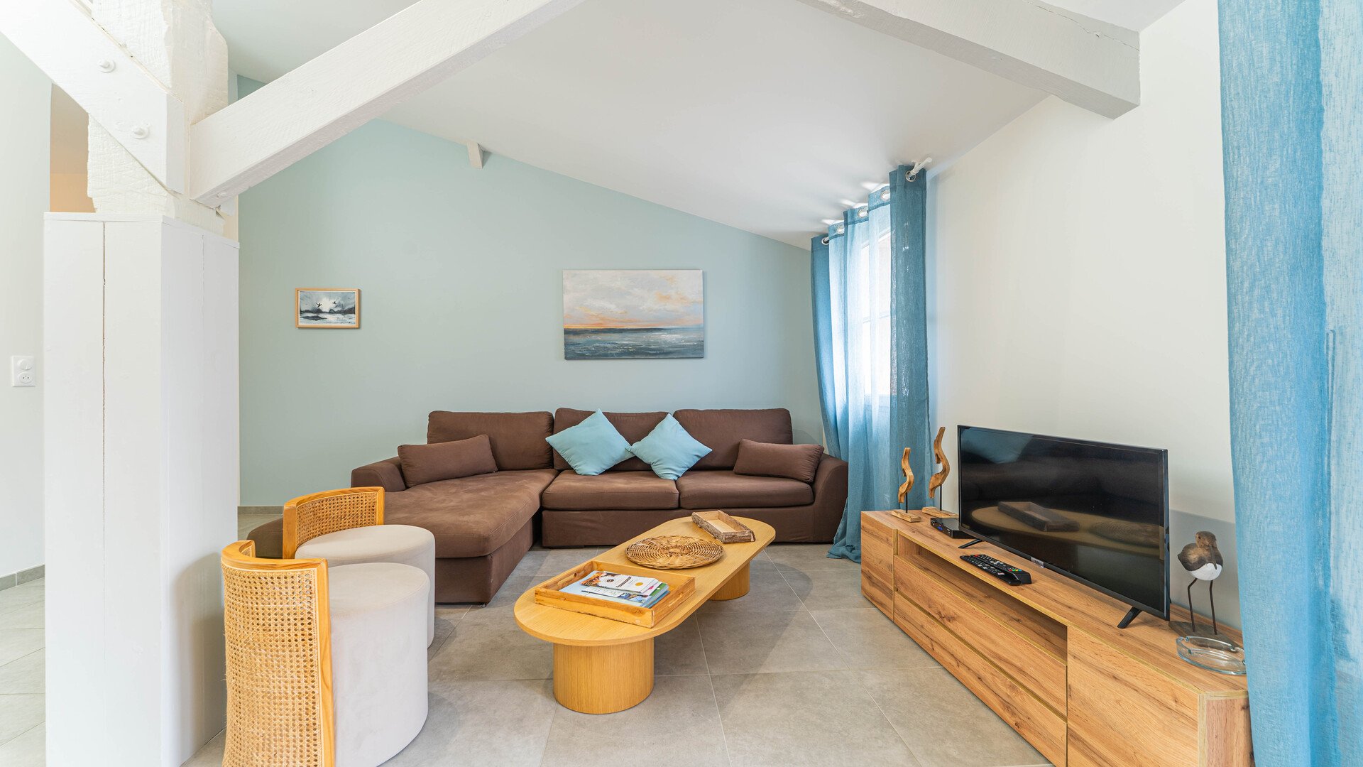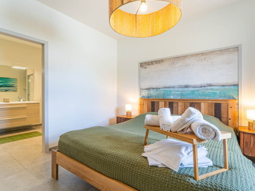 The cottage consists of a main room with fitted kitchen, dining area and TV lounge opening onto the south-facing terrace, a large bedroom with a 160 bed opening onto its shower room, and a independent toilet.