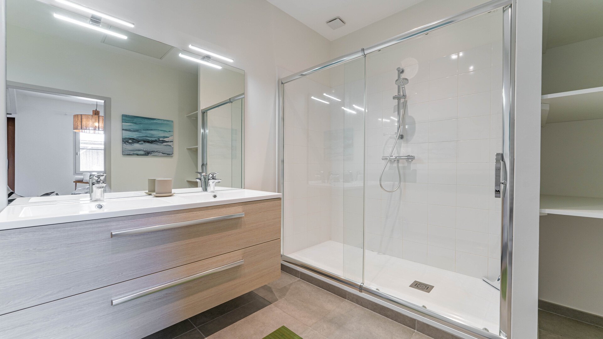 Shower, Washbasin, Hair-dryer, Towel dryer