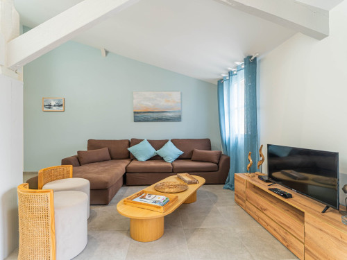 It has a private terrace with outdoor furniture, parasol and barbecue.