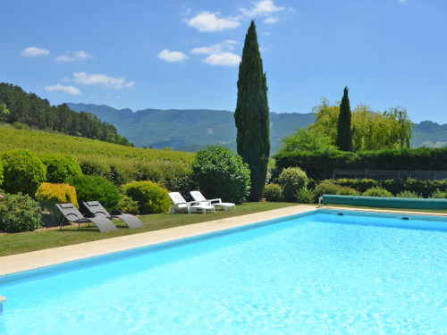 Entre la rivière Drôme et le vieux village de Mirabel, gîtes ruraux de caractère de 2 à 8 pers. (50 à 110 m²) avec terrasse et jardin donnant sur une vaste piscine bordée de vignes dans un site magnifique.