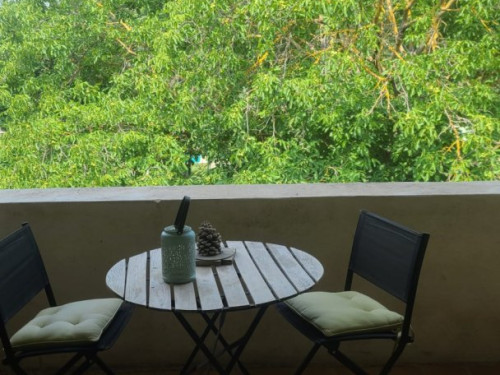Situé au 1er étage, avec entrée indépendante, vous prendrez vos repas sur la terrasse avec la vue sur le Luberon.