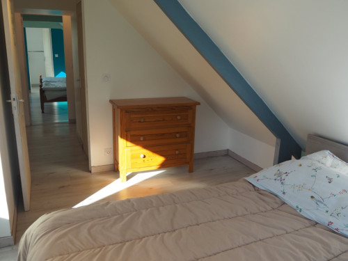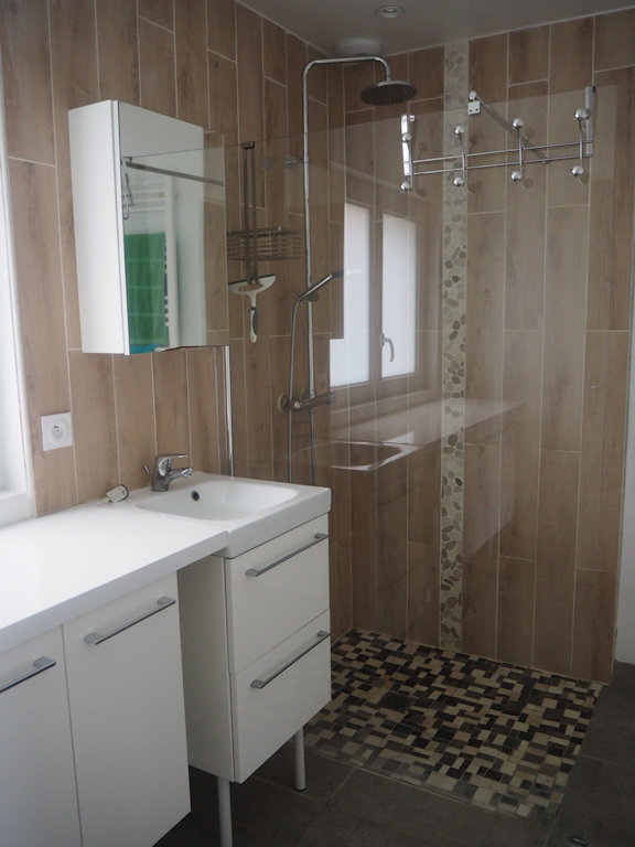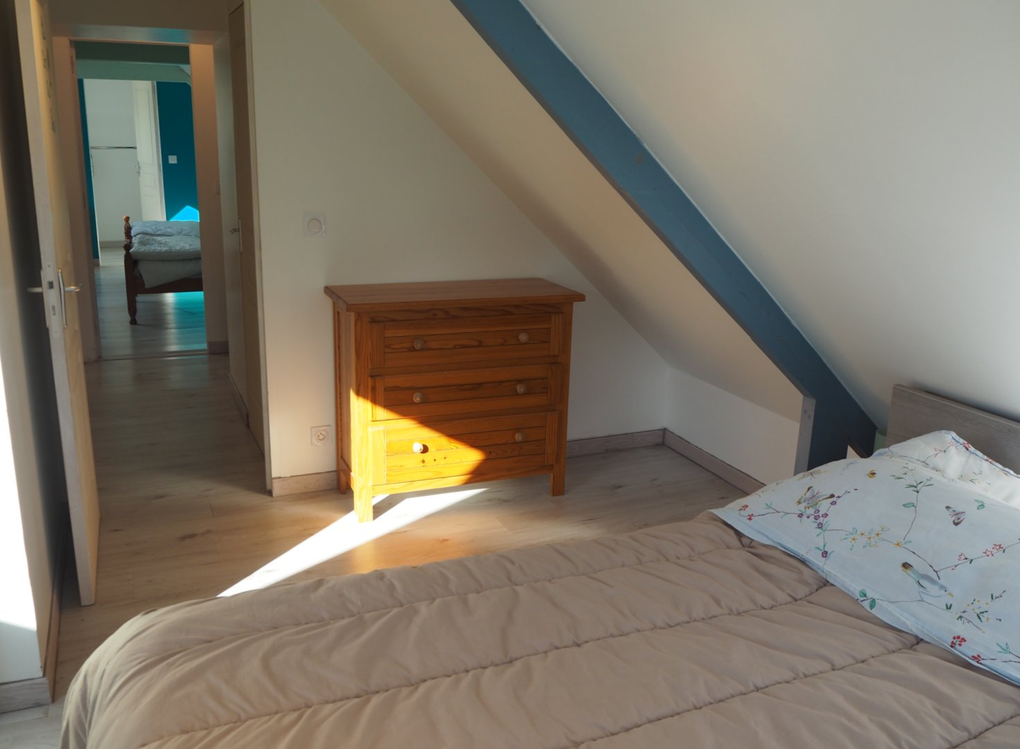 Une douche italienne dans une salle de bain spacieuse et bien agencée sera appréciée tant le matin, qu'au retour de la baignade ou d'une randonnée. Il vous faudra monter à l'étage pour accéder a : Une chambre avec lit 140 x 190 donnant sur le jardin, une commode, un meuble bas pour le rangement, une grande chambre avec trois lits 90 x 190 avec une commode, et un grand dressing à la suite, une petite chambre avec un lit 90x190, le tout très lumineux et pouvant être occulté pour ceux qui aime dormir dans le noir