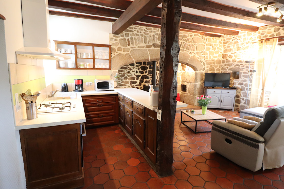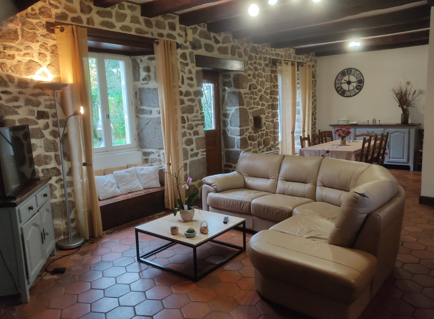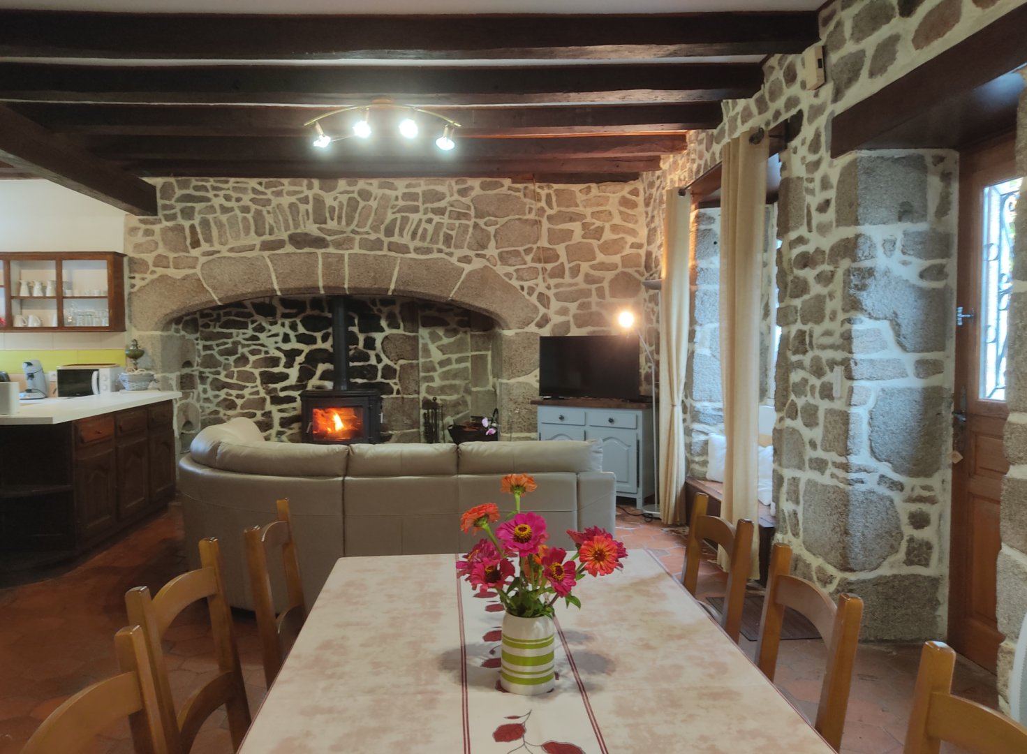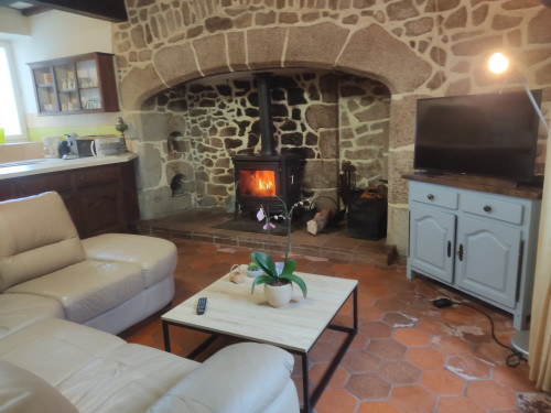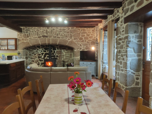 - grande pièce à vivre avec une magnifique cheminée Auvergnate (poêle à bois, fourniture du bois gratuit pour le chauffage)