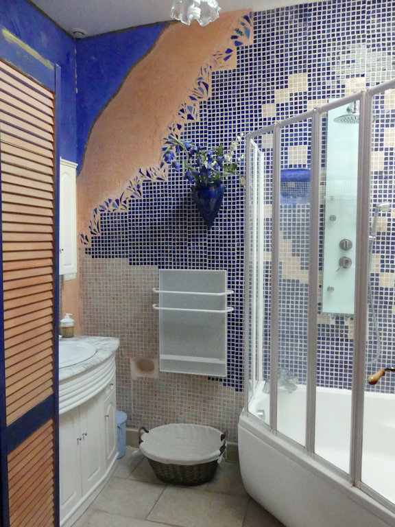 Ameublement et décoration originaux et rares : peintures à la chaux, à la caséine, vitraux et mosaïques, bois et fer forgé, marbres, verre, meubles en bois massif, tous matériaux nobles et traditionnels.