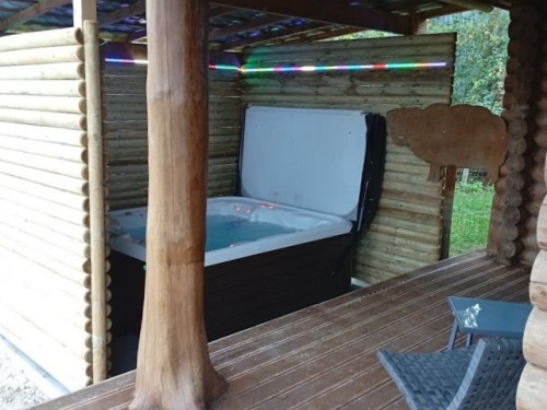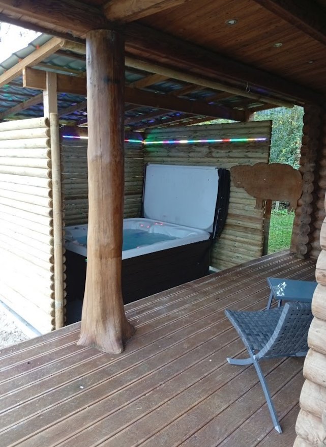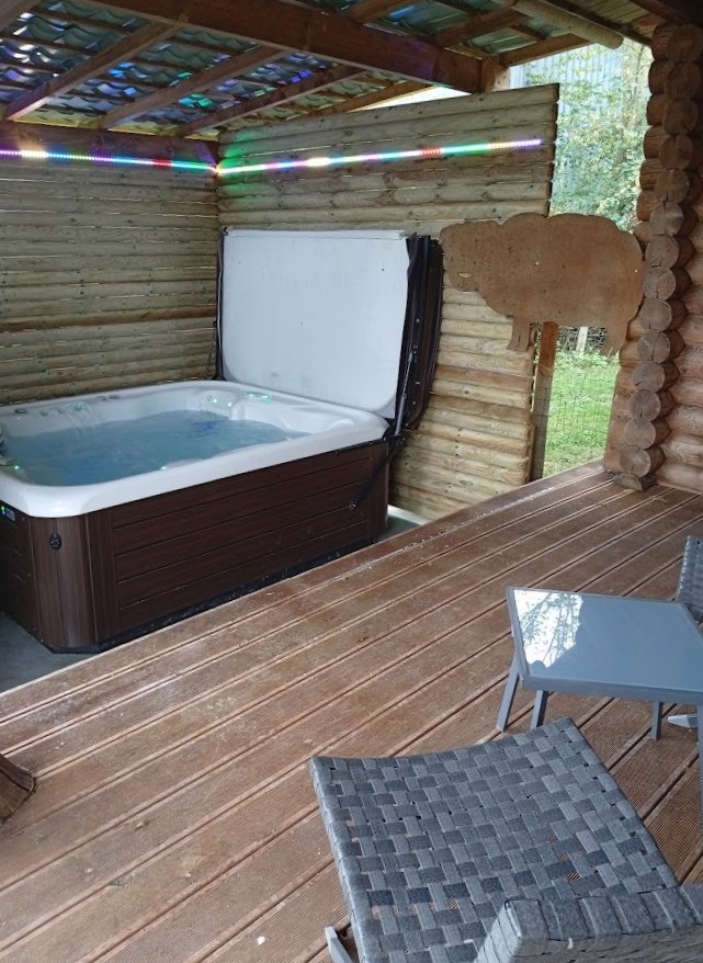 Le gîte chalet avec son jacuzzi privatif se trouve à 100m de la ferme équestre, il est entouré d'aninaux : moutons, poules et chevaux.