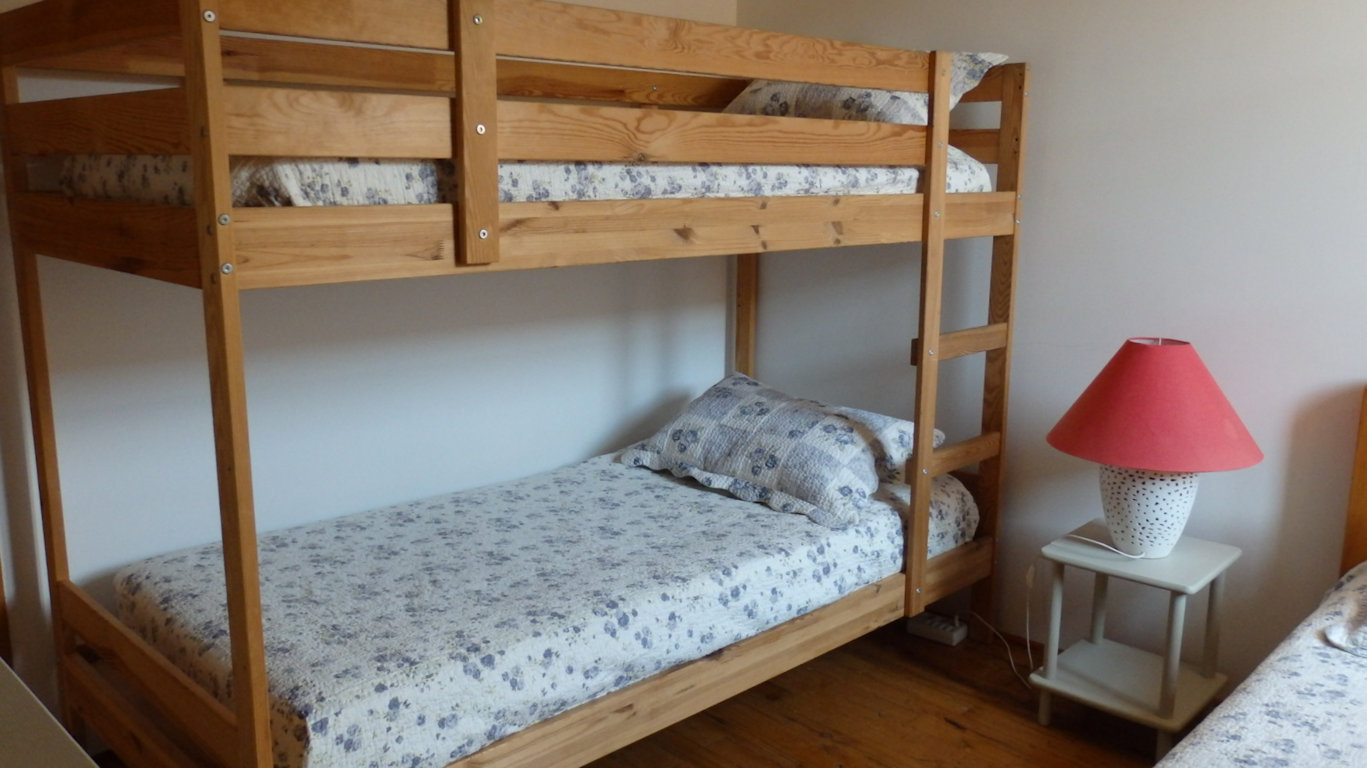 Two bright and comfortable bedrooms. A bedroom with a double bed and a bedroom with three beds (including 2 bunk beds).