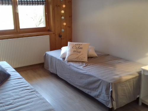 L'appartement se situe dans une maison, avec entrée indépendante et parking privatif. Il se compose d'une grande pièce à vivre cuisine séjour, un salon télévision indépendant Trois grandes chambres, salle de bain. WC indépendant. A disposition appareil à raclette, à Fondue, à Crêpes. Terrasse équipée transats, Salon de jardin et barbecue et store banne de terrasse.