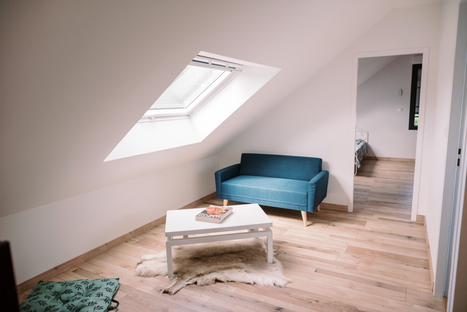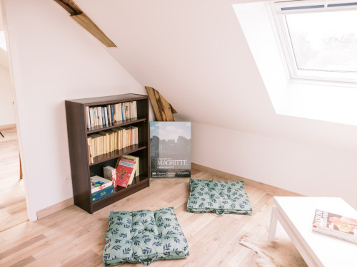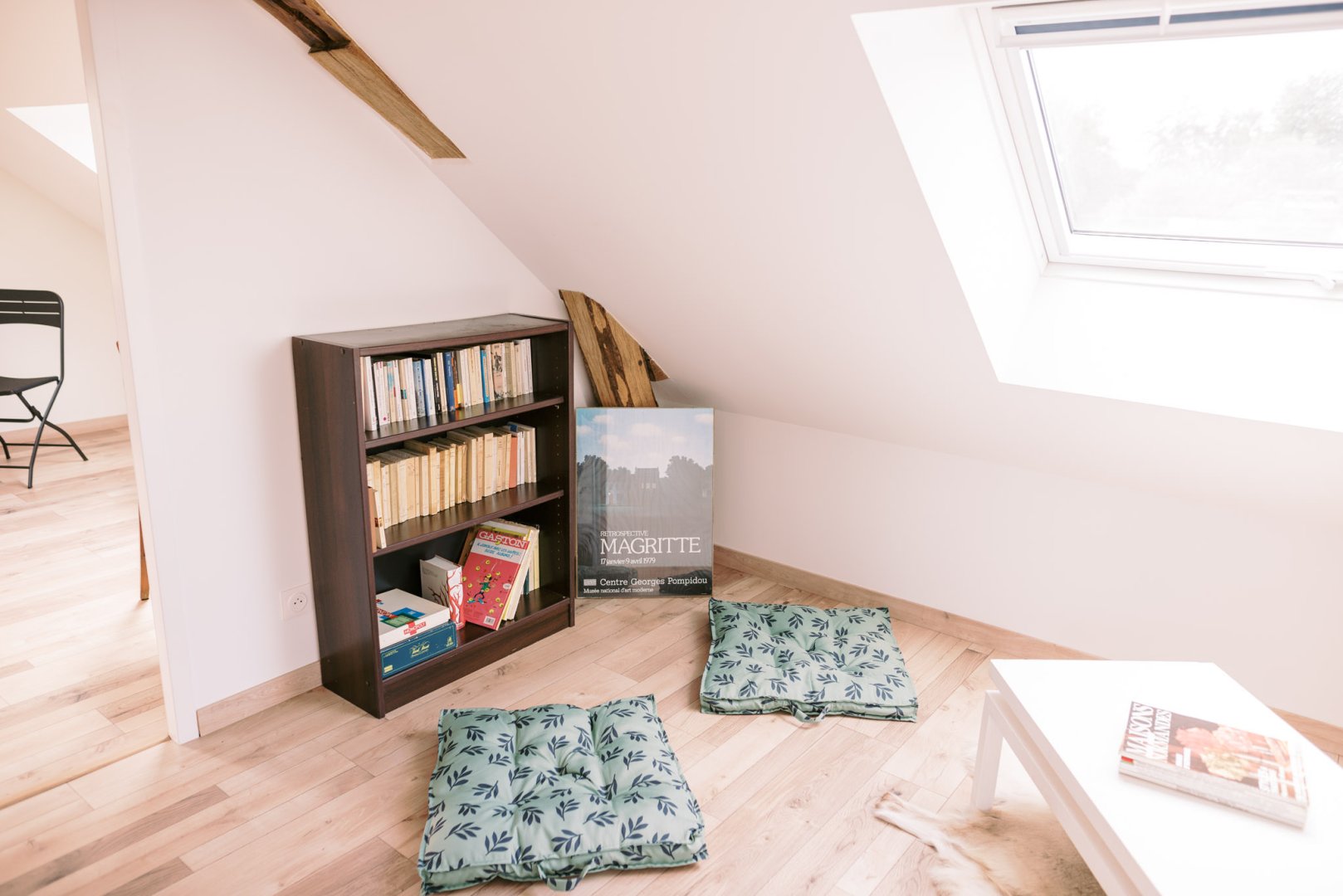 • à l'étage : deux grandes chambres, pallier aménagé , salle de bain, jeux pour enfants et livres