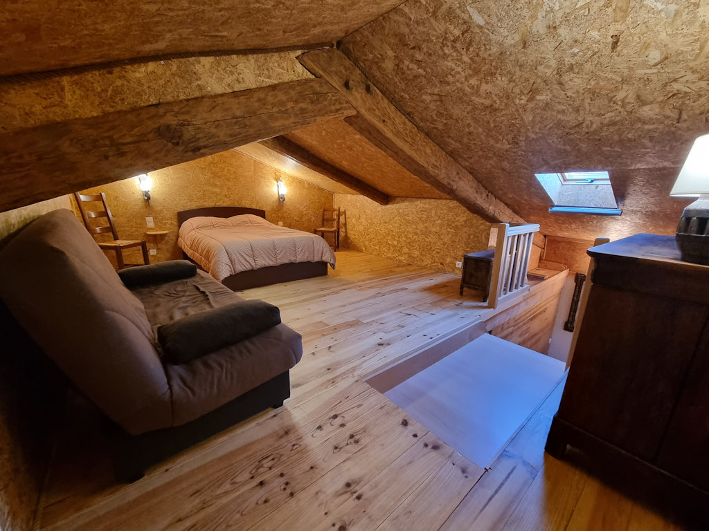 - à l'étage, un dortoir avec un lit 2 personnes et un canapé convertible 2 personnes