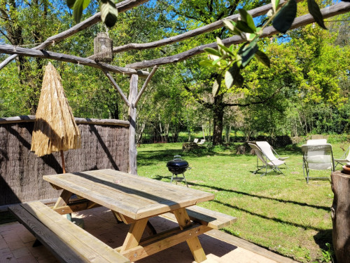 Équipé d'une table de jardin et d'un barbecue pour vos repas, transats.