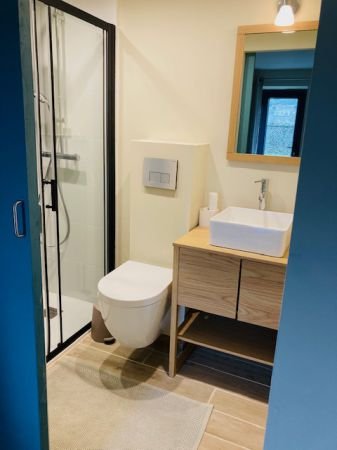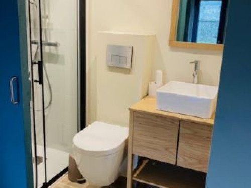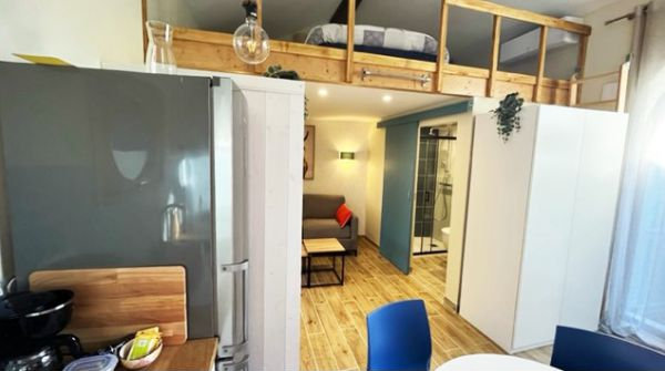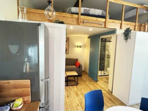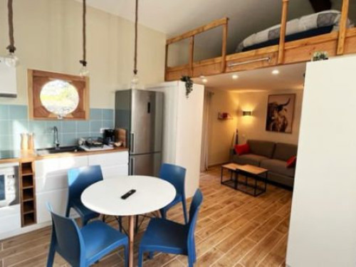 Idéal pour 2-4 personnes maximum, ce logement lumineux et chaleureux est entièrement équipé d'un poêle à bois, clim réversible, salle de bain avec douche & WC, mezzanine avec 1 lit double, salon/séjour avec canapé lit, cuisine et un jardin situé au bord de l'eau.
