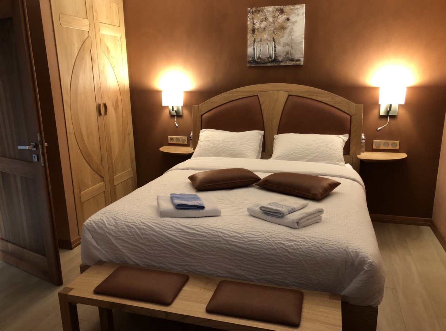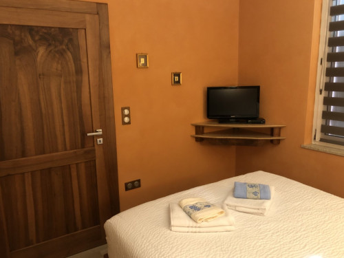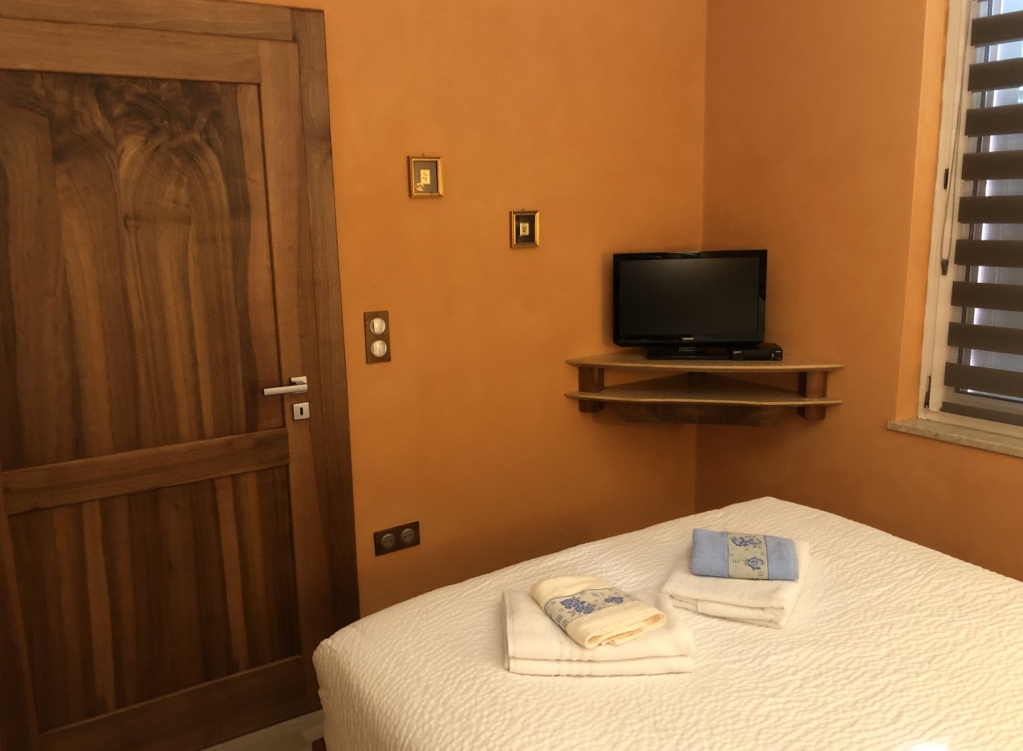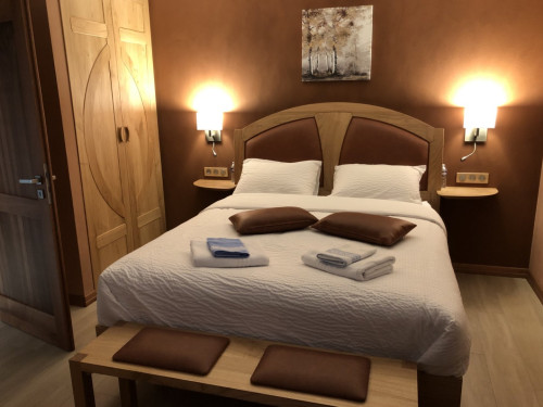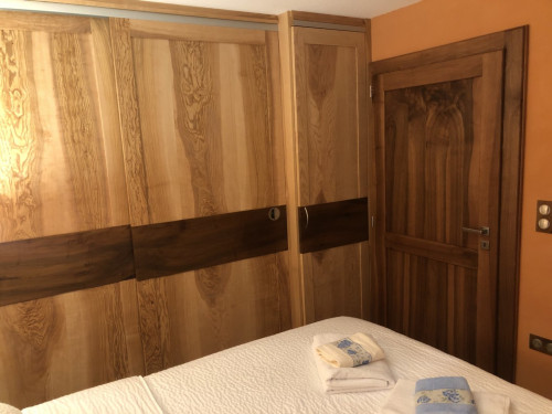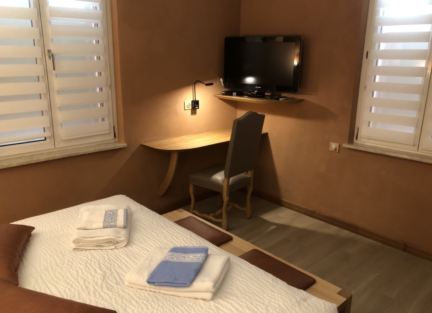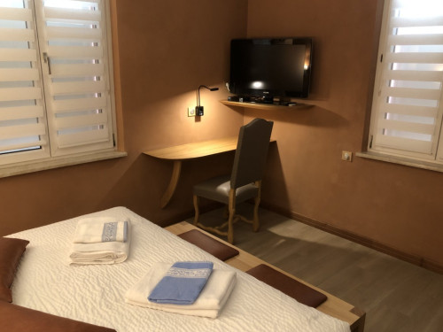2 chambres à coucher équipées. La première d'un lit double de 160 et la seconde d'un lit double de 140 ainsi que d'un bureau, un téléviseur et un placard chacune.