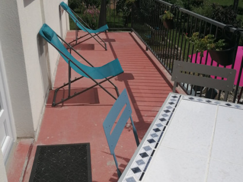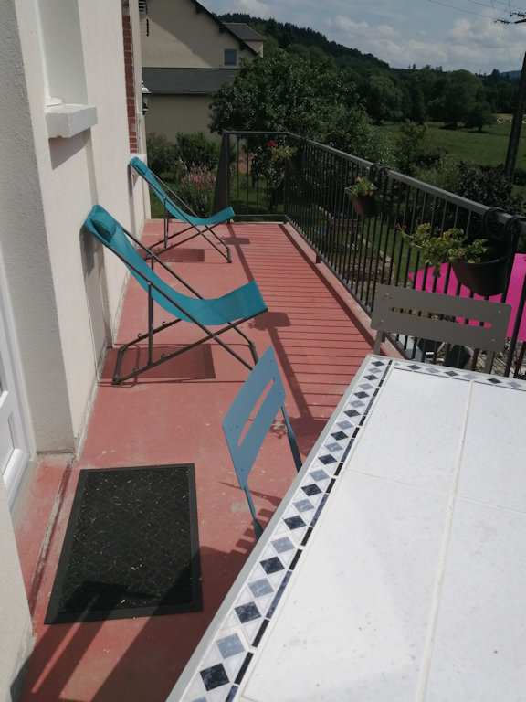 Extérieur Balcon avec coin petit déjeuner , Terrasse, salon de jardin, parasol, barbecue.