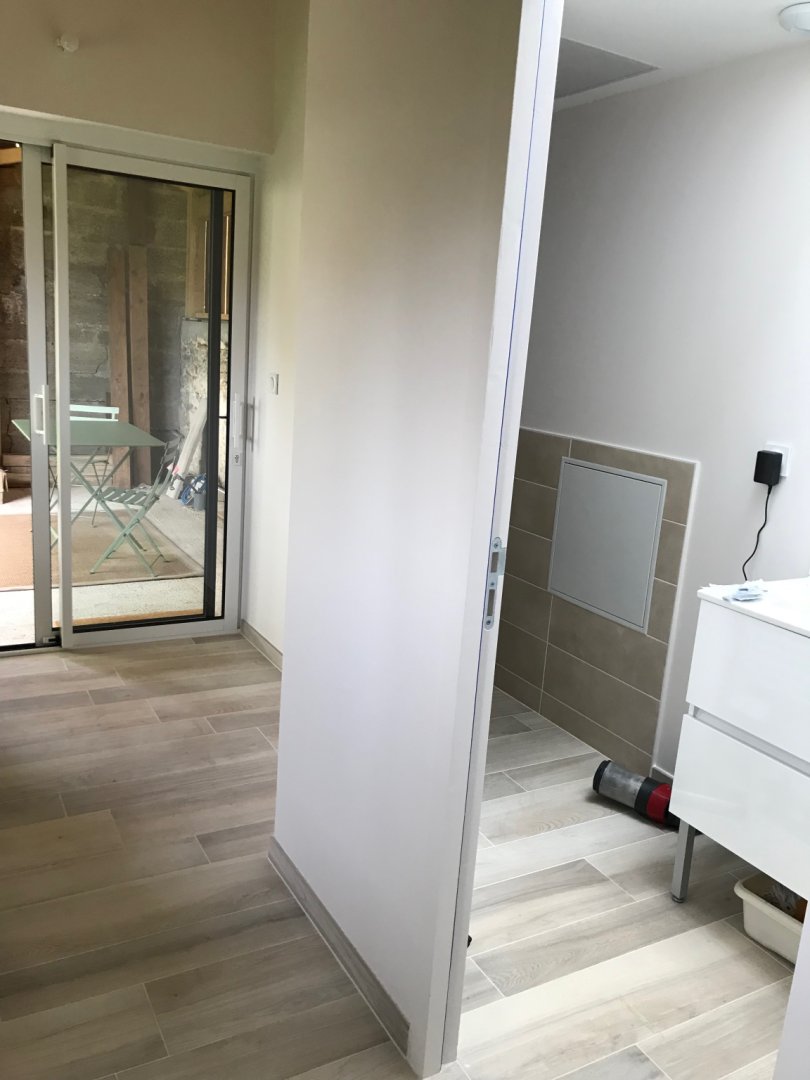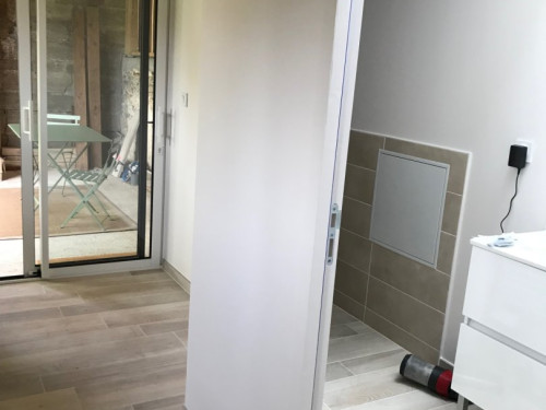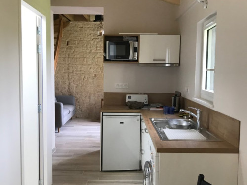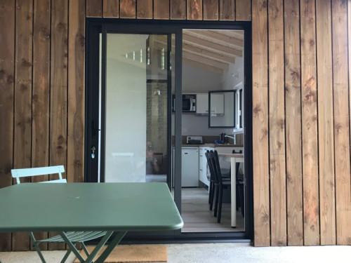 Gîte neuf créé par architecte, 30 m² + salle de bain 5 m², dans le jardin de 1000 m² où se trouve la maison du propriétaire. Entrée jardin commune avec le propriétaire.