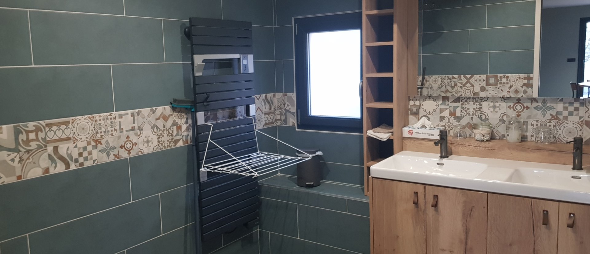 Douche à l'italienne, Lavabo, Sèche-serviettes