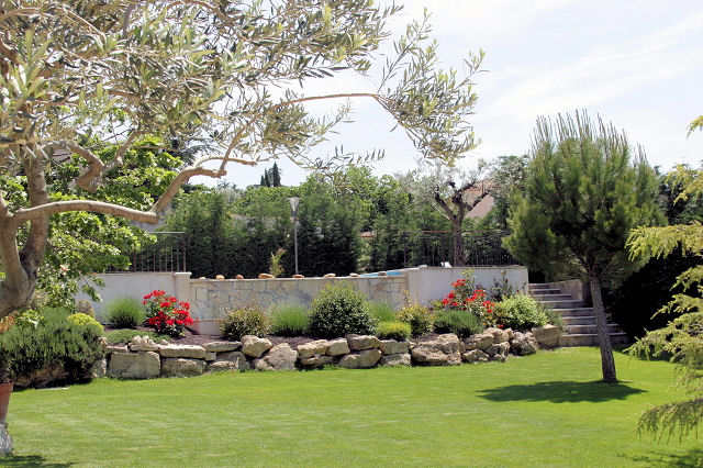 Le parc végétalisé avec sa piscine à débordement 12 x 5 m font partie des atouts extérieurs où le calme alterne avec le chant des cigales.