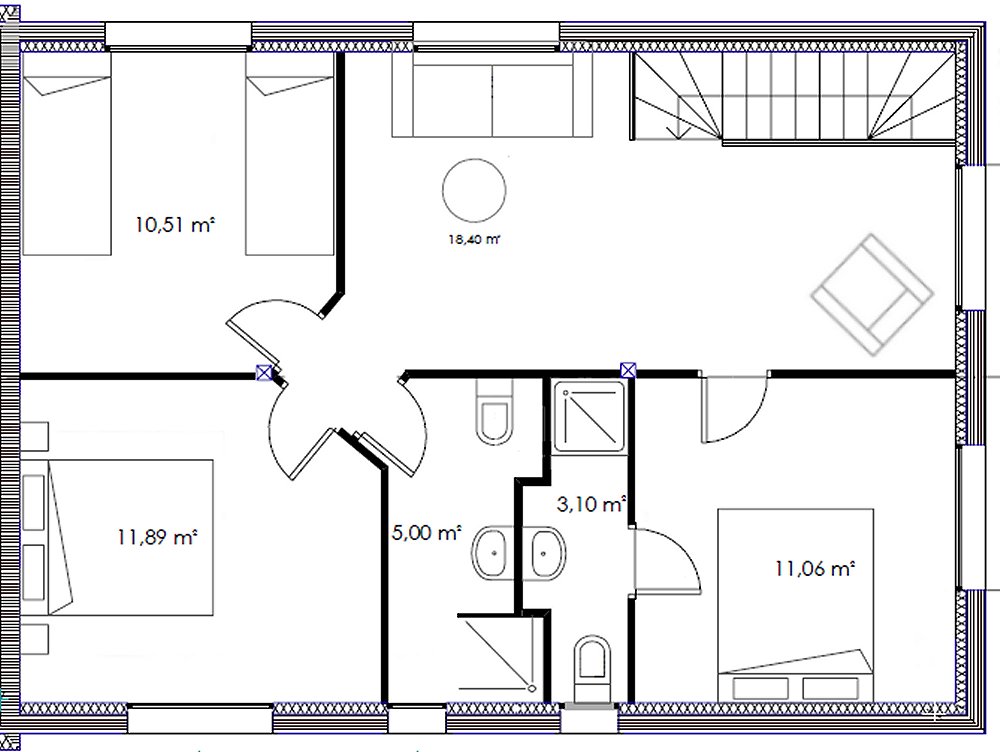 - une chambre avec 2 lits simples (90x200)