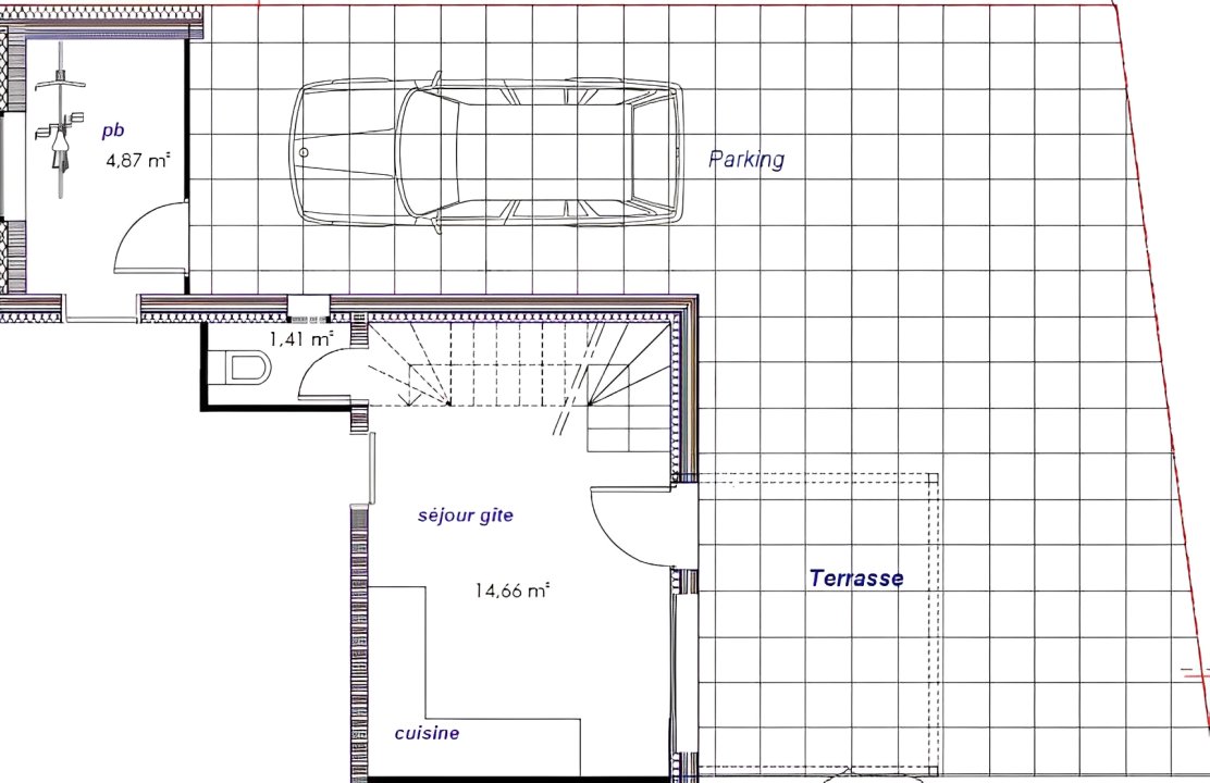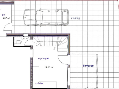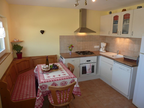 - la cuisine donne sur une terrasse de 20 m² et sur le parking. Mobilier de jardin et barbecue sont à disposition.