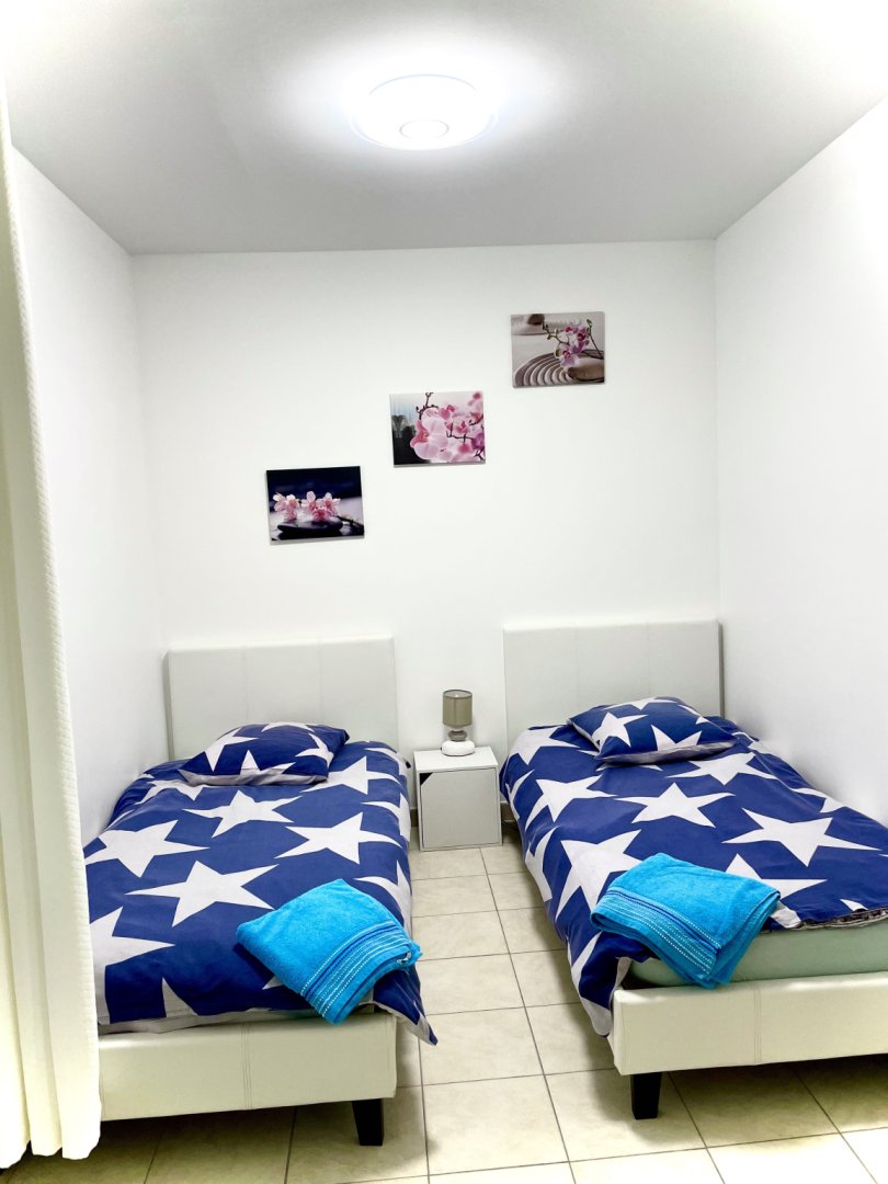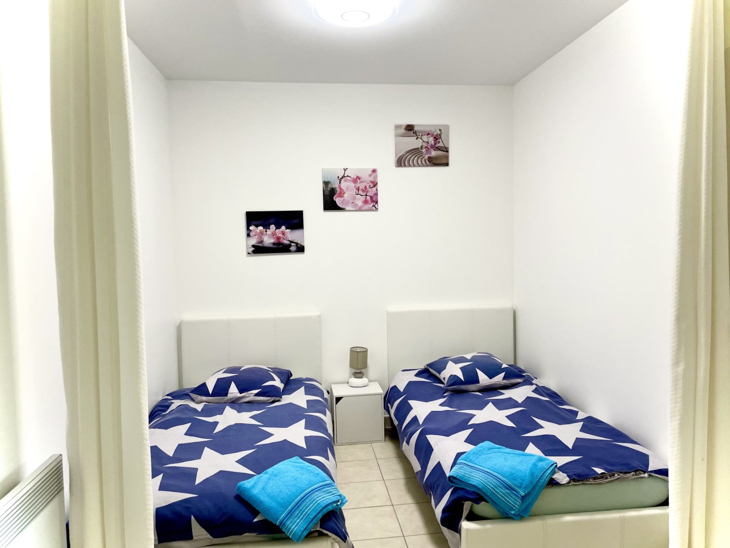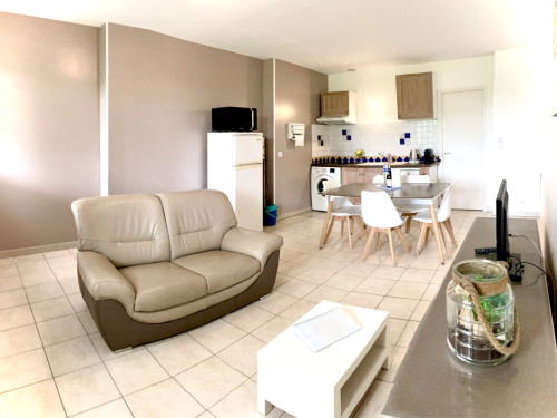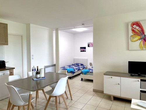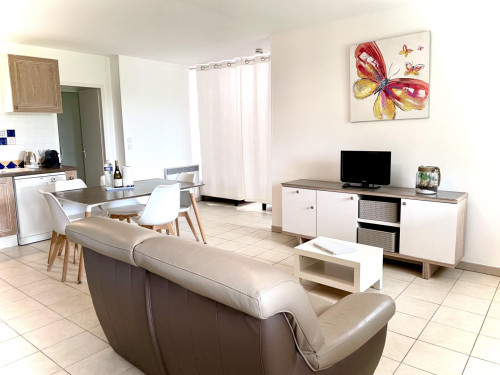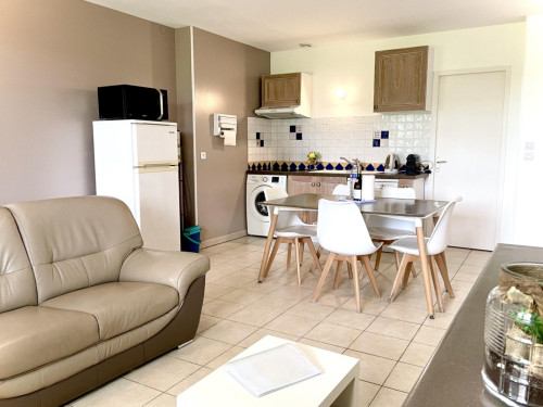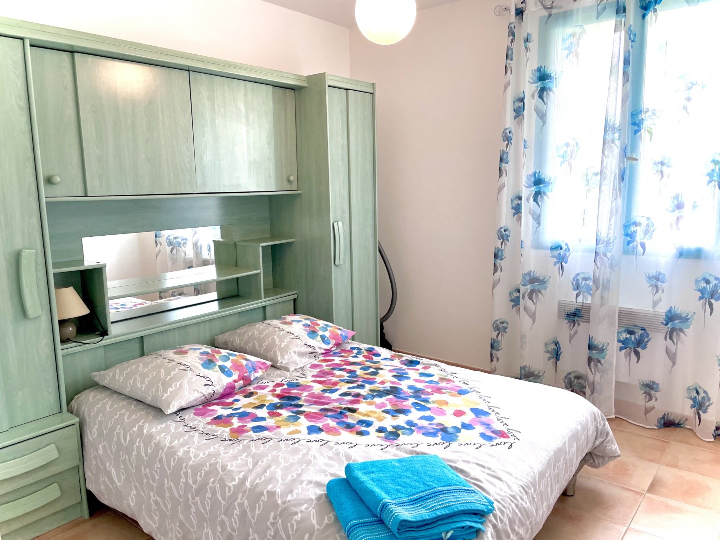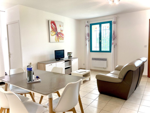 You will find an equipped kitchen, a dining room, a bedroom with a double bed, a sleeping area with two single beds, a bathroom and a toilet. Its private terrace is equipped with a table with chairs, deckchairs and a barbecue.