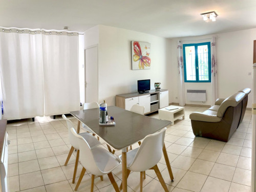 Facing upwind, the river and the garden of olive trees, on the pony club side, this air-conditioned gite for 4 people, on the ground floor with independent access, offers you an area of 52 m².