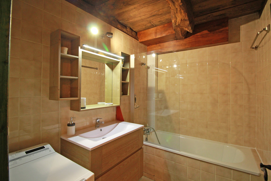 • à l’étage : une grande chambre triple (lit 160 × 200 + lit 90 × 200), un espace détente avec couchage d’appoint (jusqu’à 2 personnes – 10 € / pers.), une salle de douche et des toilettes indépendantes.