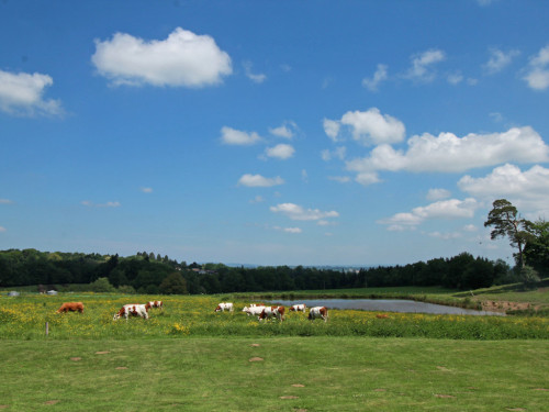Offrant une belle vue sur le parc et les étangs d’un domaine agricole et forestier conduit en agriculture biologique, le gîte (150 m²) se compose :