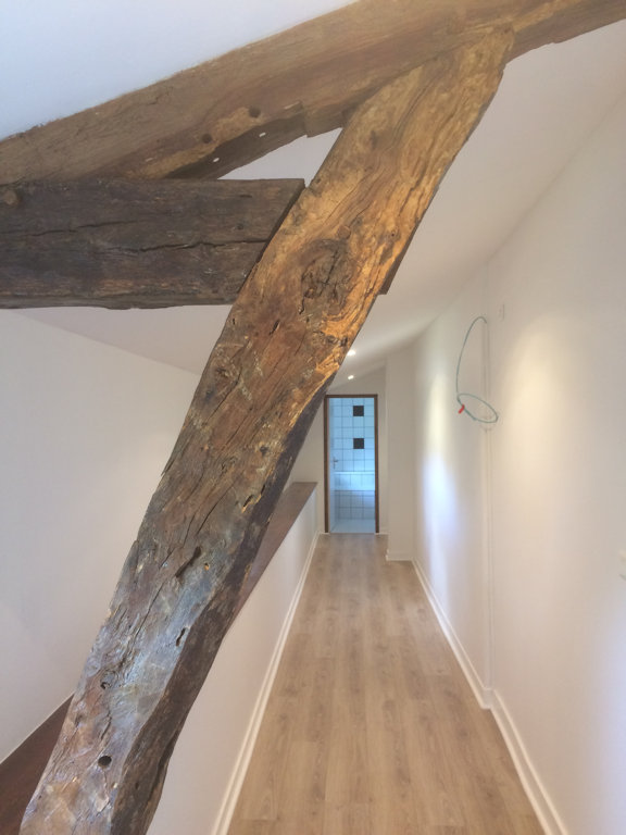 Logement neuf, aménagé dans une bâtisse de caractère datant du XVIIème siècle, au cœur d'un vaste domaine agricole et forestier.