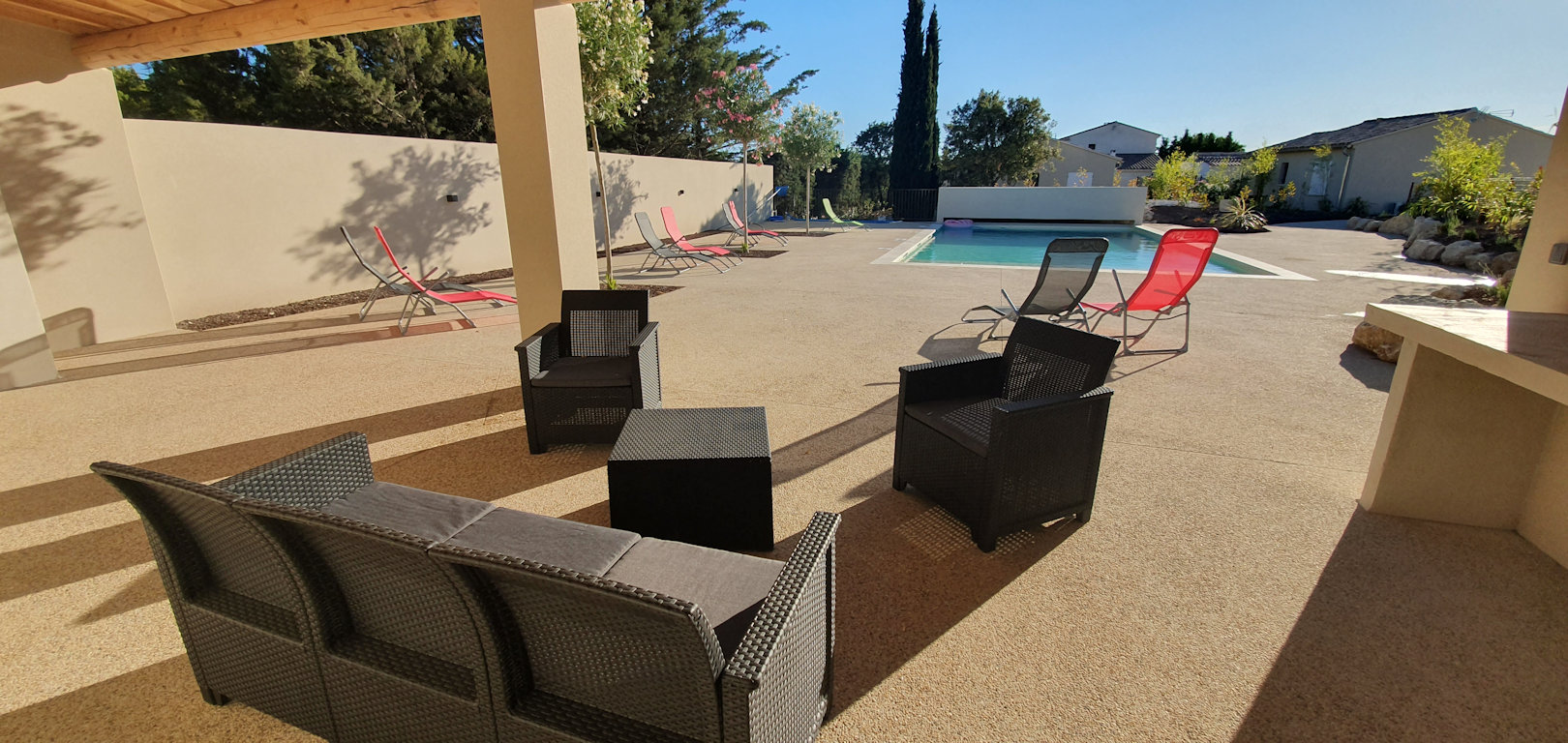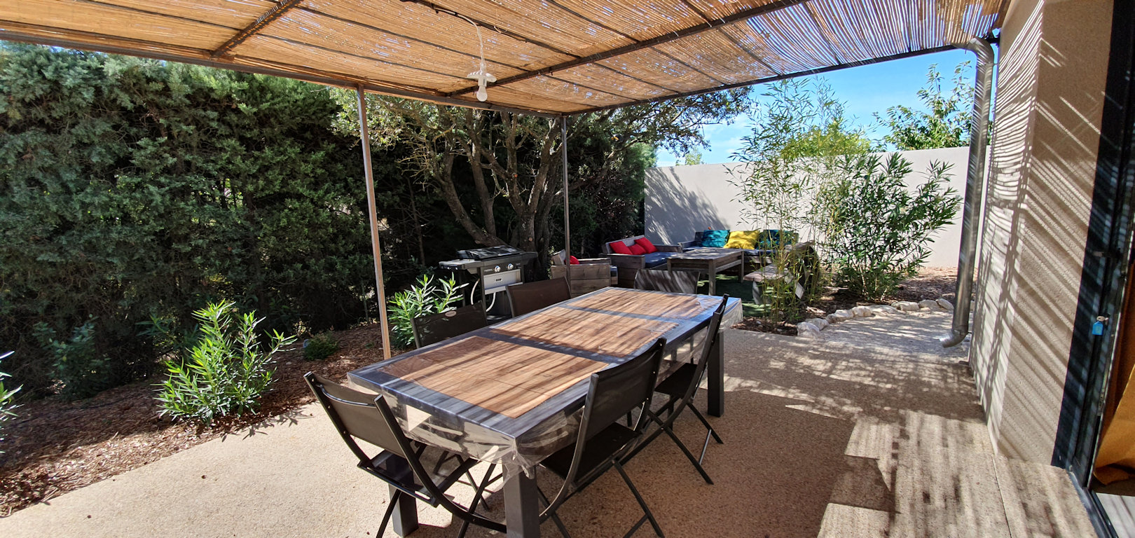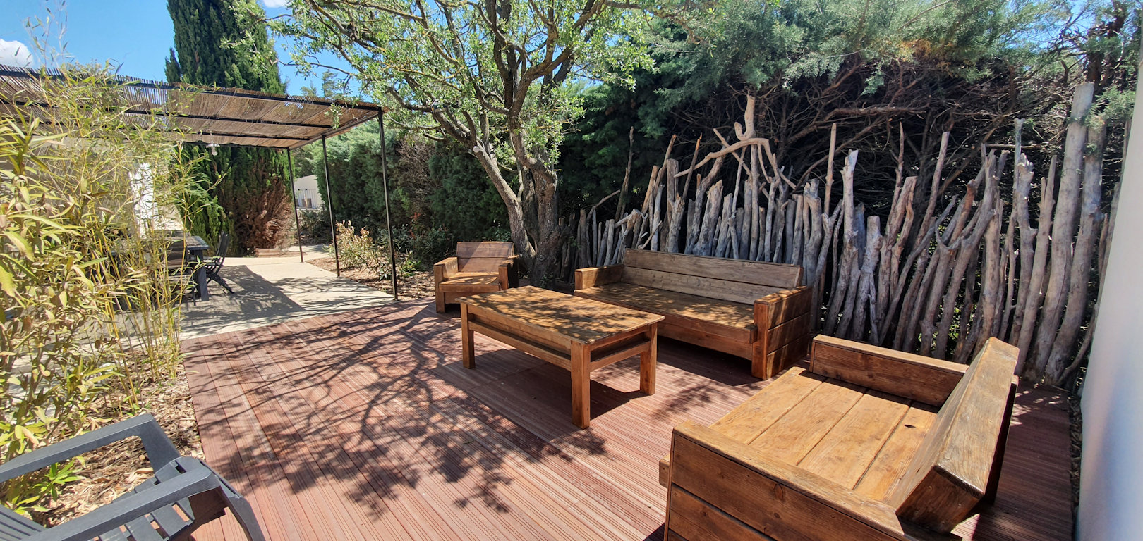 Chaque gîte est entièrement climatisé et possède une terrasse avec une pergola, un salon de jardin, un plancha à gaz.