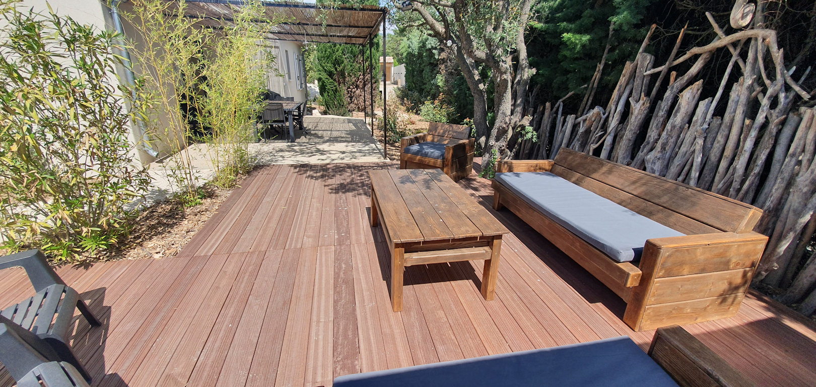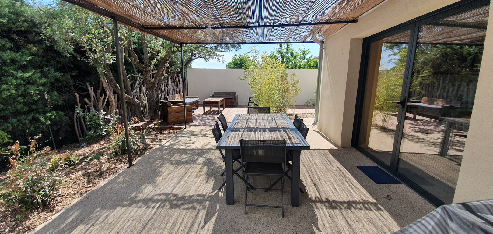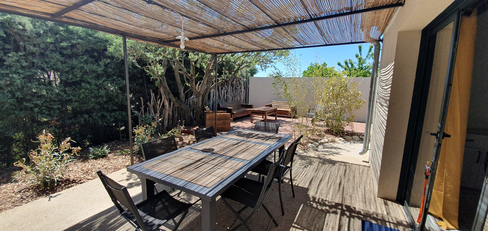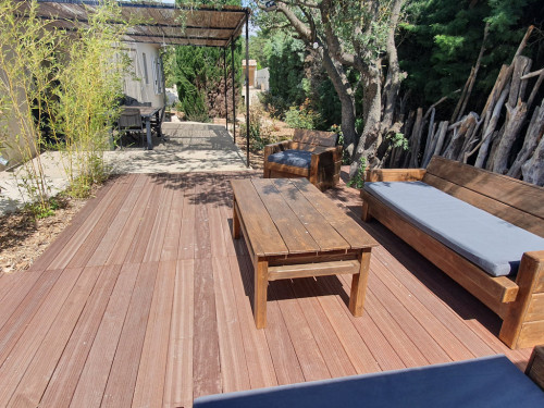 Chaque gîte est entièrement climatisé et possède une terrasse avec une pergola, un salon de jardin, un plancha à gaz.