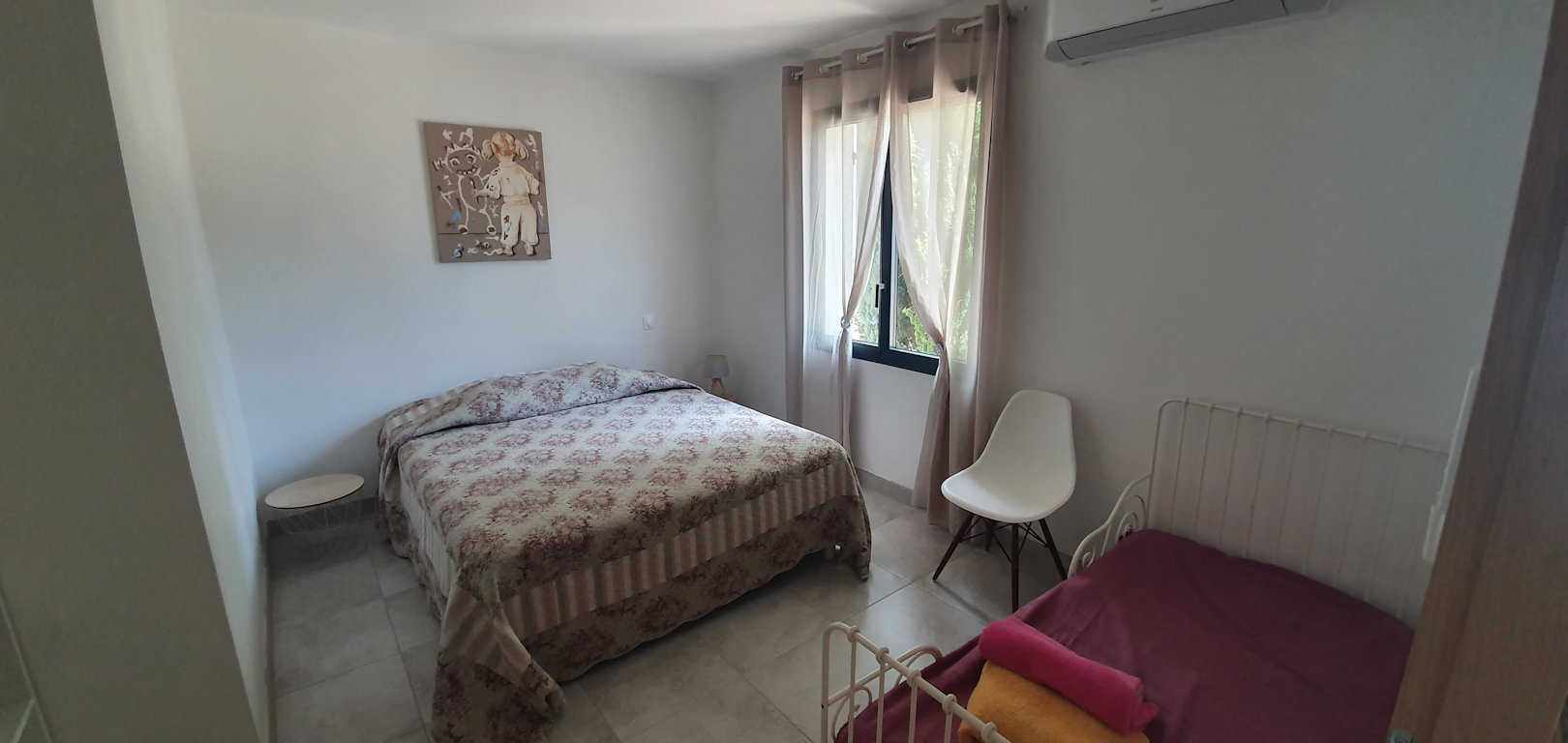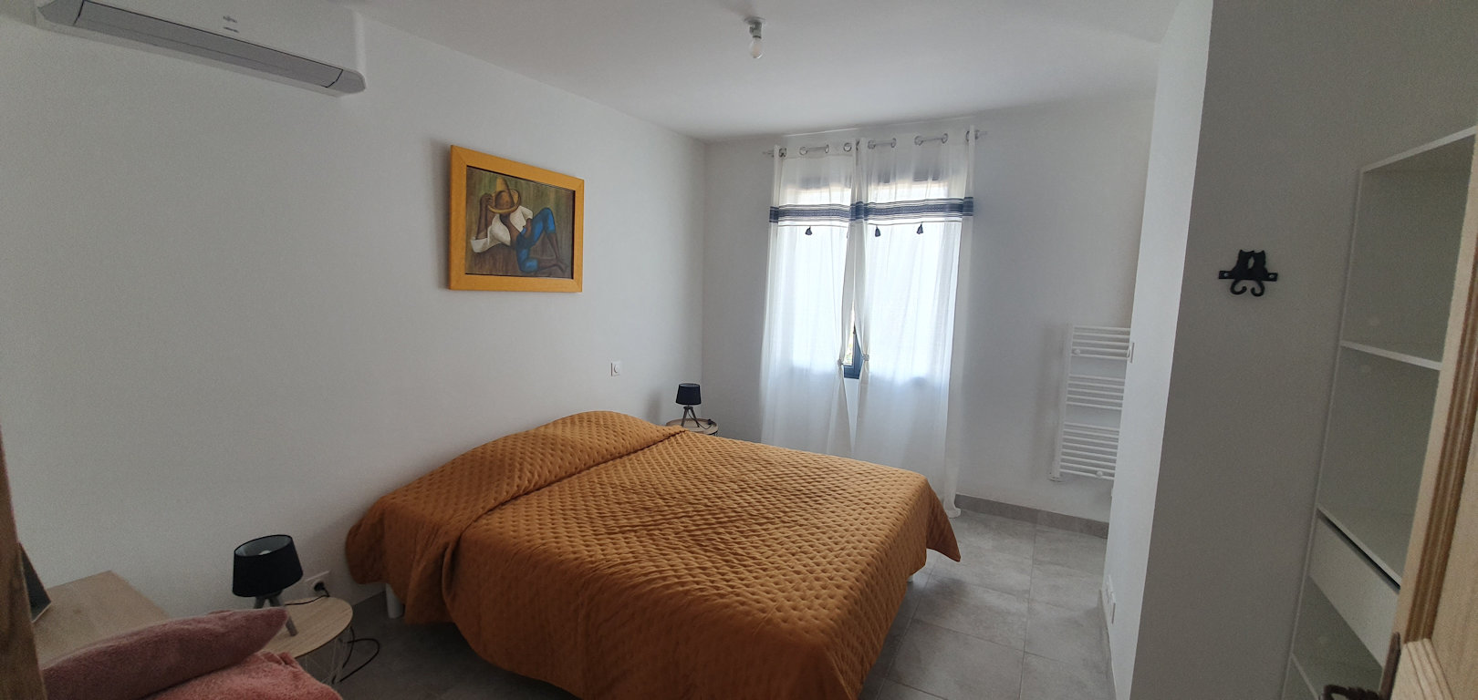 Une chambre avec lit en 160 et une salle d'eau. Une seconde chambre avec lit en 160 et un lit d'appoint.