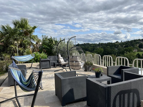 Logement équipé de : télévision écran plat avec décodeur parabole avec chaînes françaises et étrangères, lave-linge, sèche-cheveux, barbecue, salon de Jardin, WiFi, lits avec couette