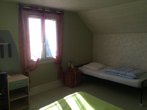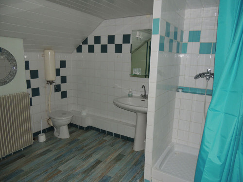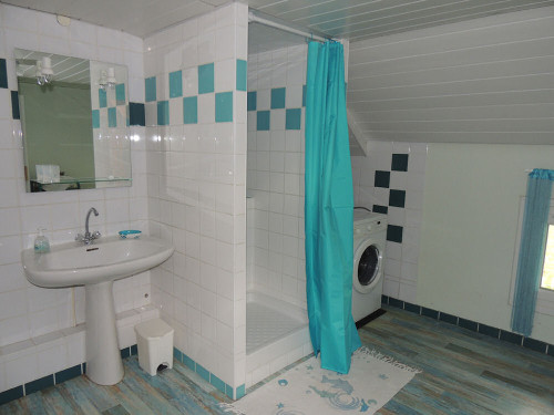 Étage : chambre avec 2 lits simples - grande SDB avec douche et WC. Lit d'appoint (5ème personne) sur demande