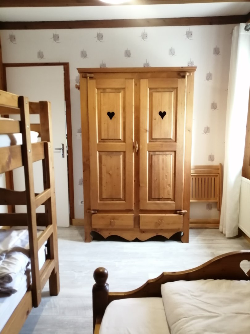- 2 chambres fermées, une avec 1 lit de 2 places (140), l'autre avec un lit 2 places (140) et 2 lits superposés de 90