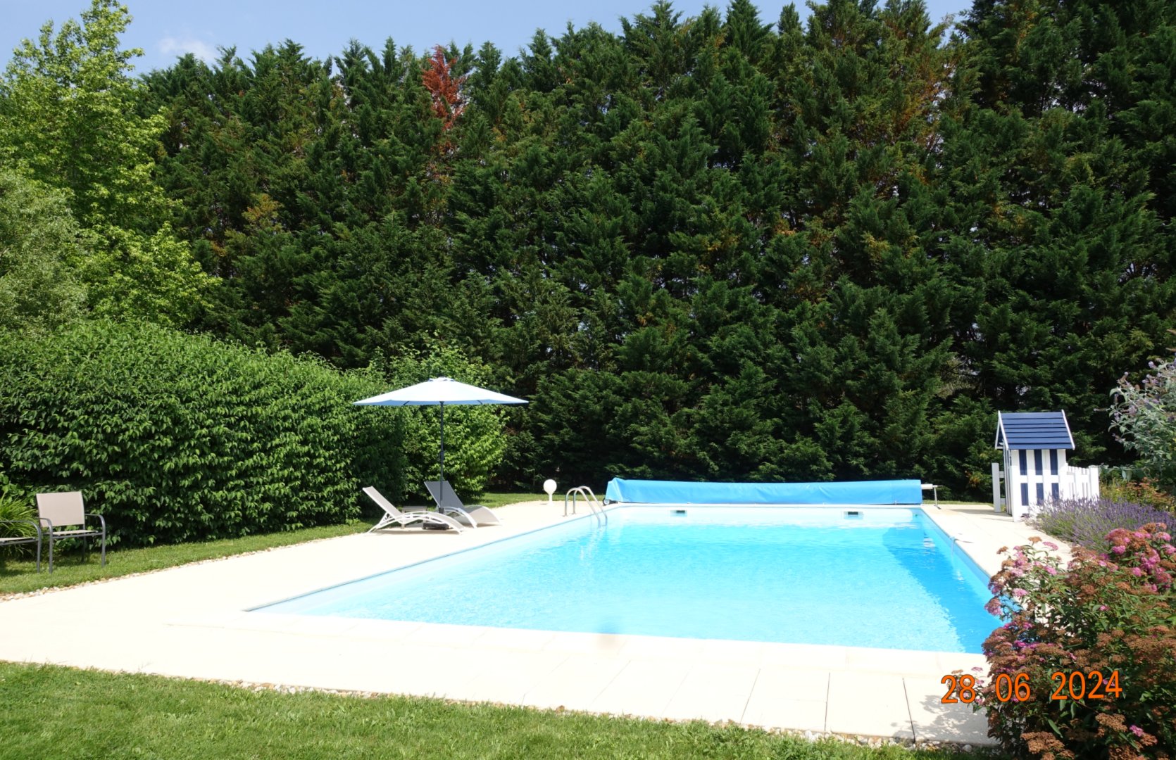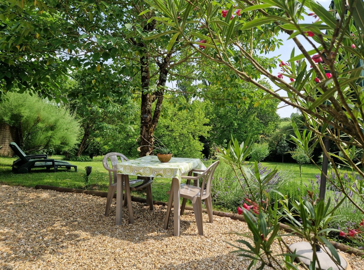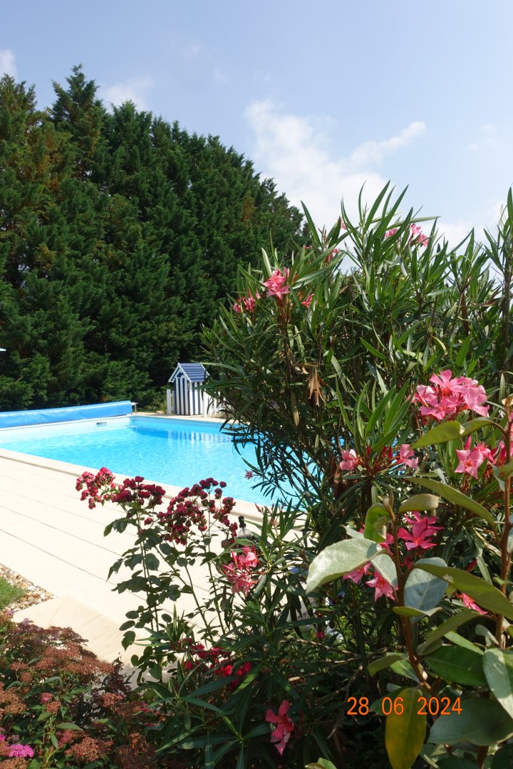 Ce gîte est situé dans un paisible parc où on a l’impression de découvrir un jardin botanique où chaque plante est notée: remarquable! La belle piscine permet de se rafraîchir après une journée de découverte.