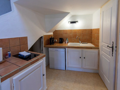 - un espace cuisine équipée : plaque électrique, four micro-ondes, frigo avec congélateur, lave-vaisselle, cafetière Dolce Gusto, cafetière filtre en libre-service, bouilloire, grille-pain
