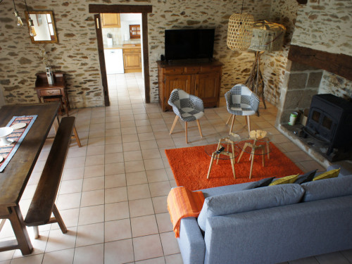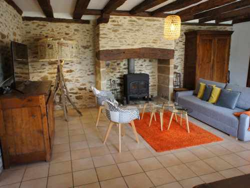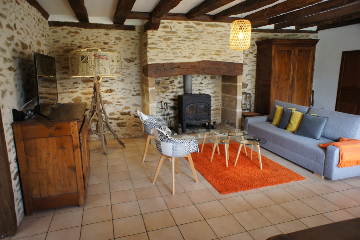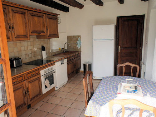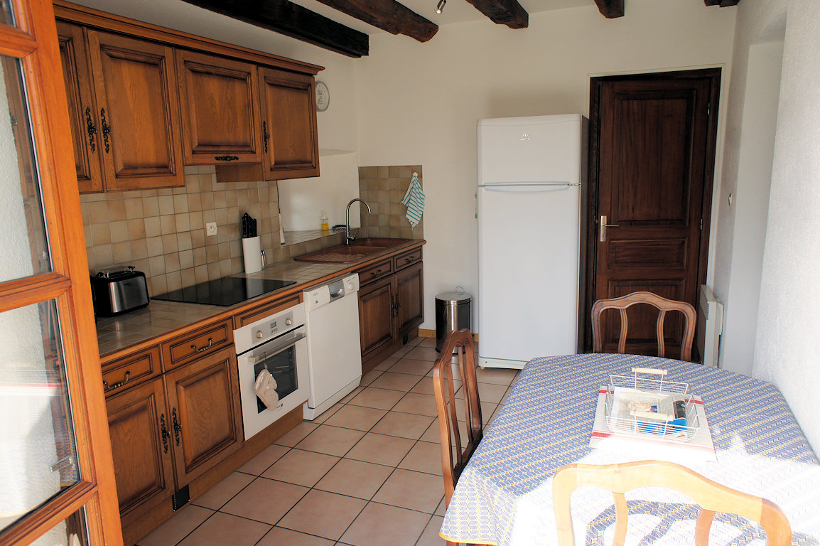 • au rez-de-chaussée : 1 séjour - salon avec un poêle dans le cantou (cheminée), un canapé convertible, une cuisine totalement équipée, 1 wc