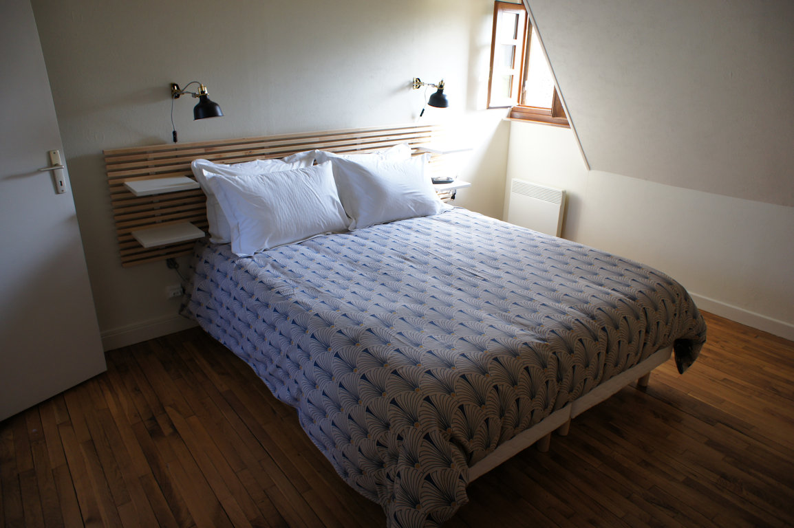 • à l’étage : 1 chambre avec un lit 160x200, 1 chambre avec un lit 160x200 pouvant devenir twin (2 lits de 80x200), 1 salle d’eau avec douche et wc